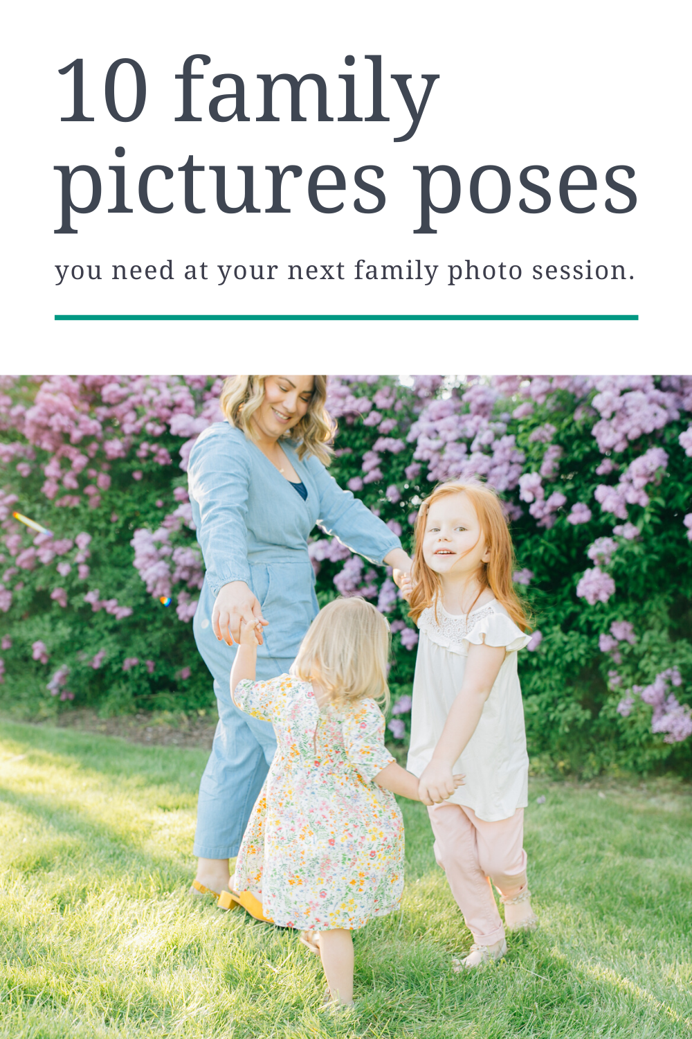 1. Ring around the Rosie – I love having siblings or mom and the kids play ring around the rosie together. Playing this game creates the most darling joyful expressions and beautiful motion.10 Family Picture Poses You Need at Your Family Pictures Session