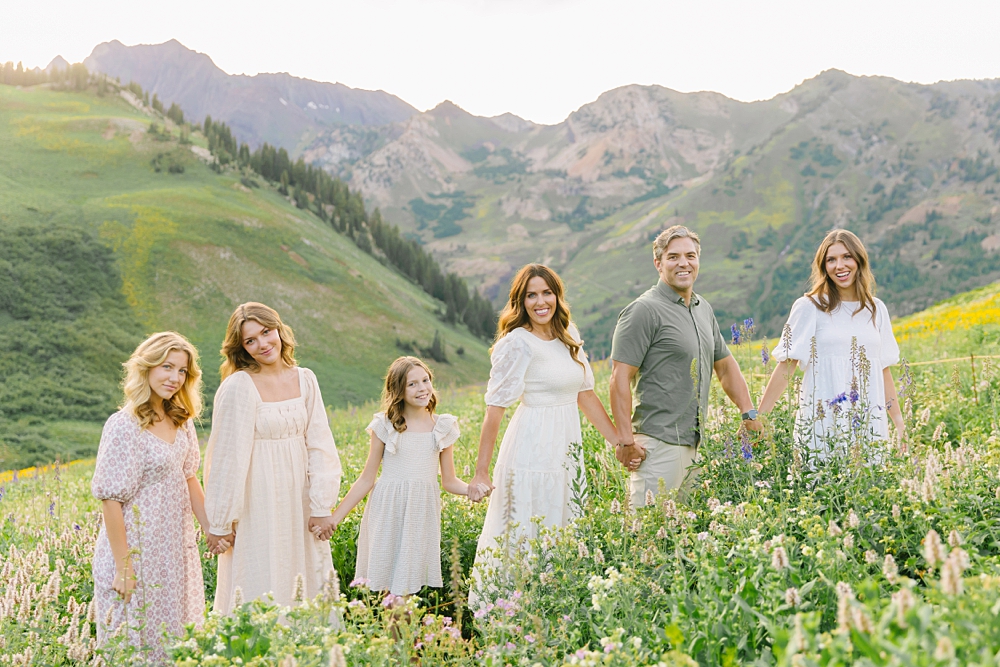 Nestled amidst the rugged grandeur of the Wasatch Mountains, Albion Basin is a hidden gem that offers a magical setting for family portraits. With its vibrant wildflowers, serene alpine meadows, and panoramic vistas, this location transforms your family’s moments into a symphony of colors and emotions.