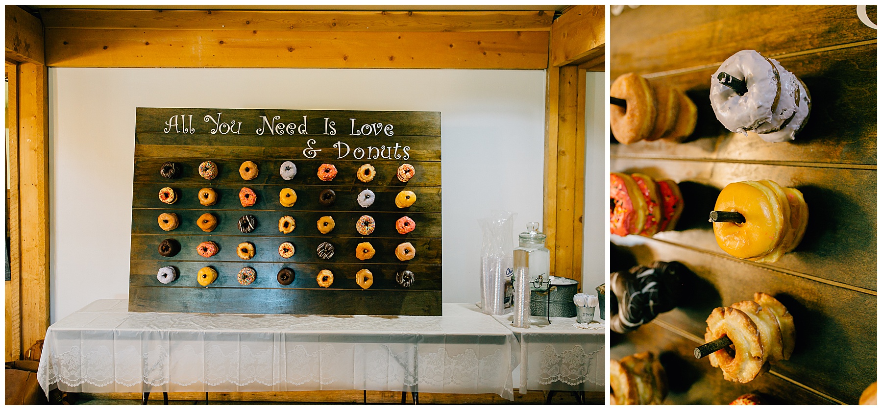 I’ve shot a few weddings at Wheeler Farm but this was definitely one of my favorites! I loved Tia and Alex’s peg doughnut wall. It was so darling and creative – and such an affordable option for feeding a lot of wedding guests.
