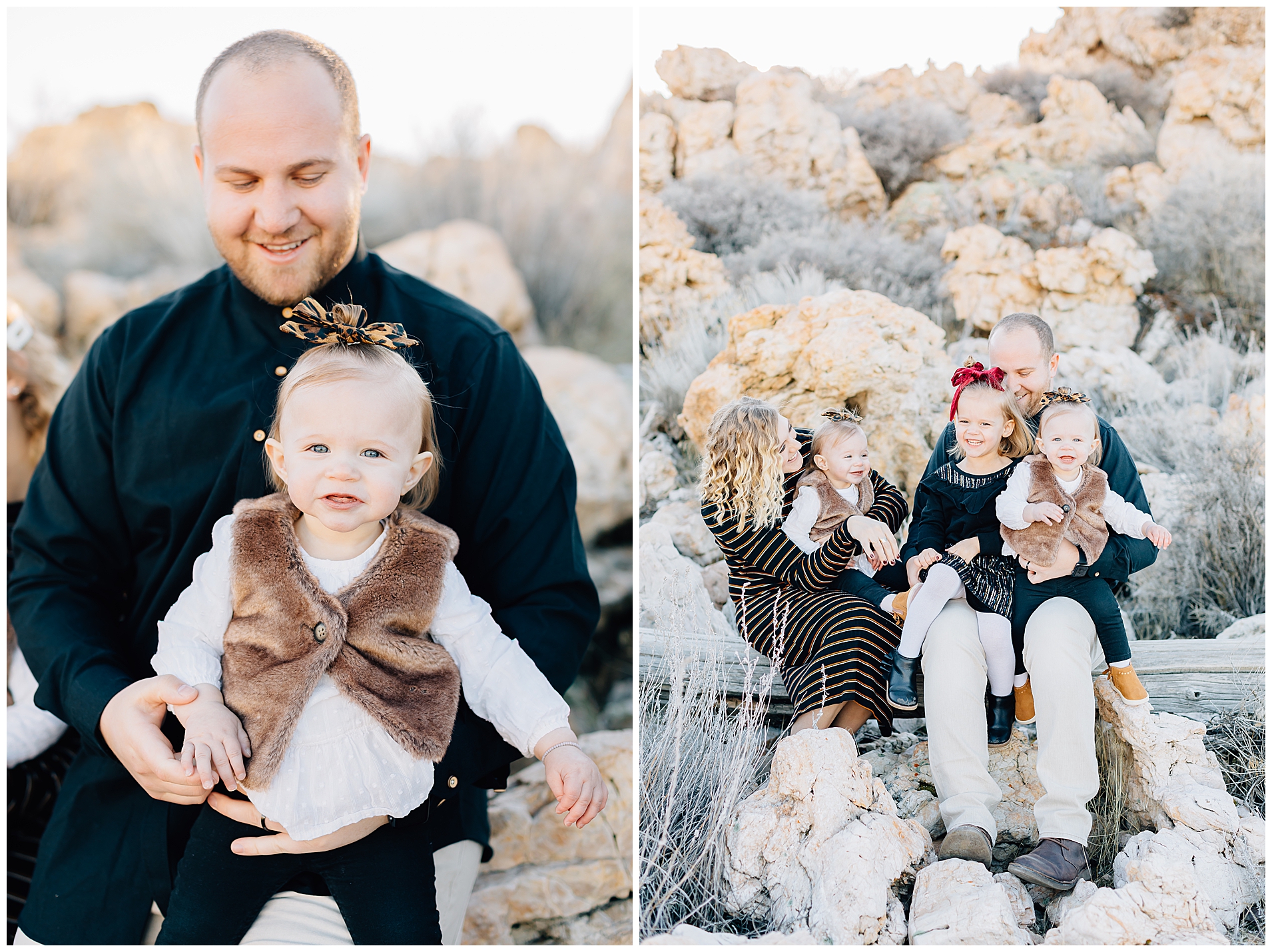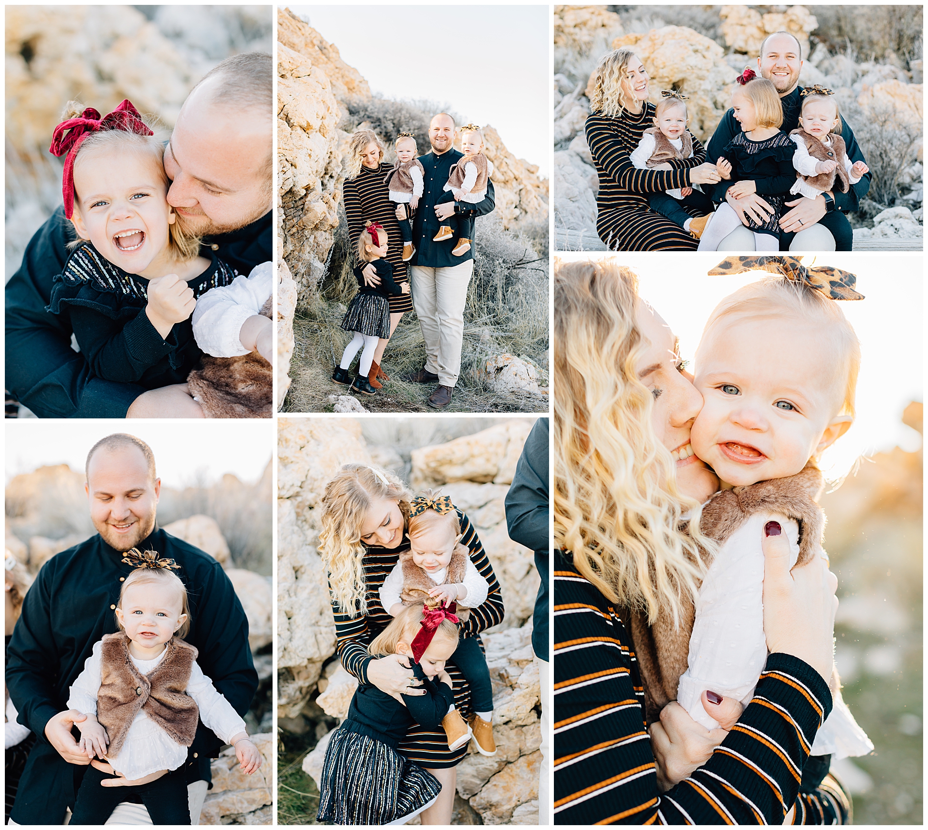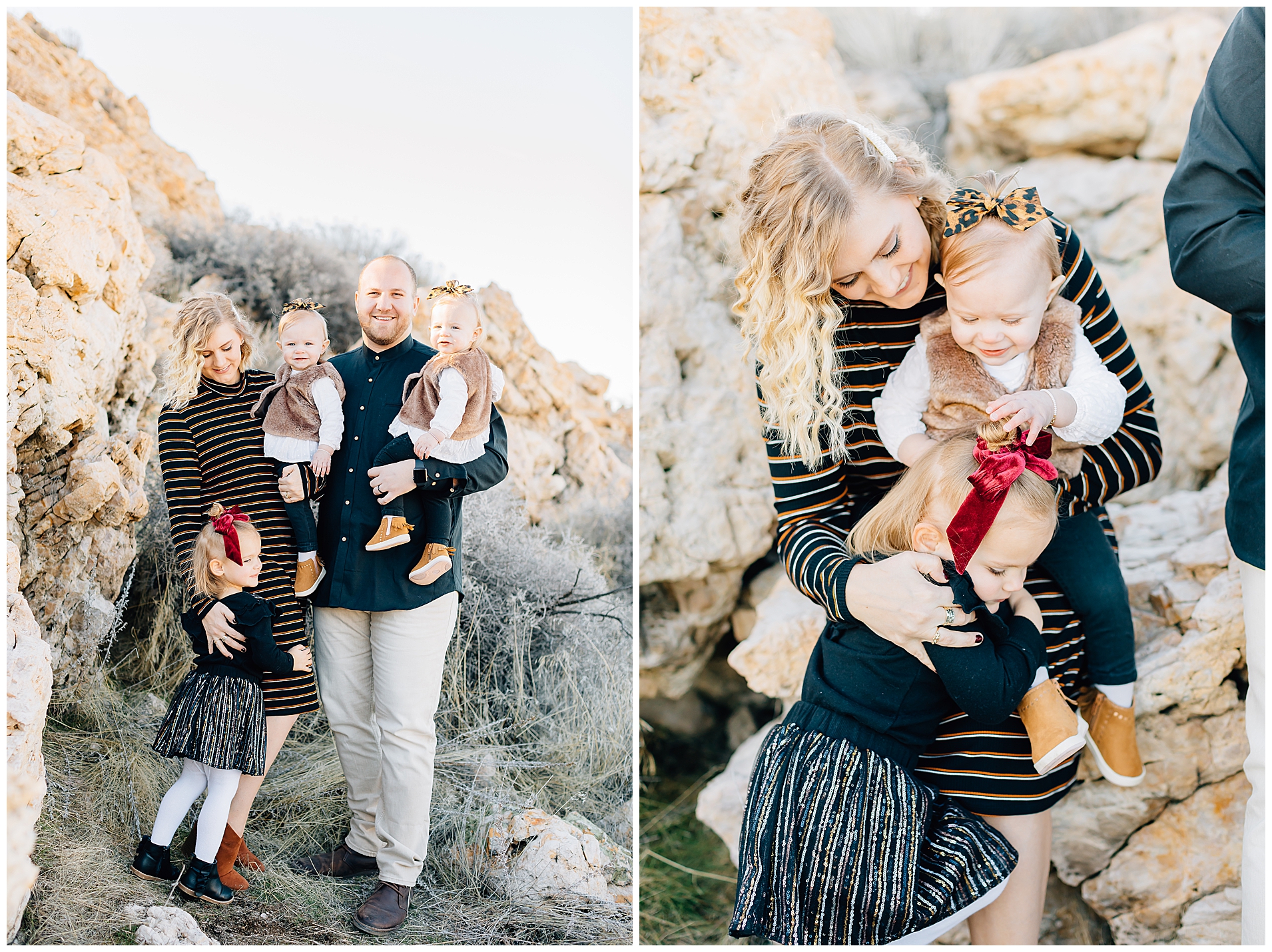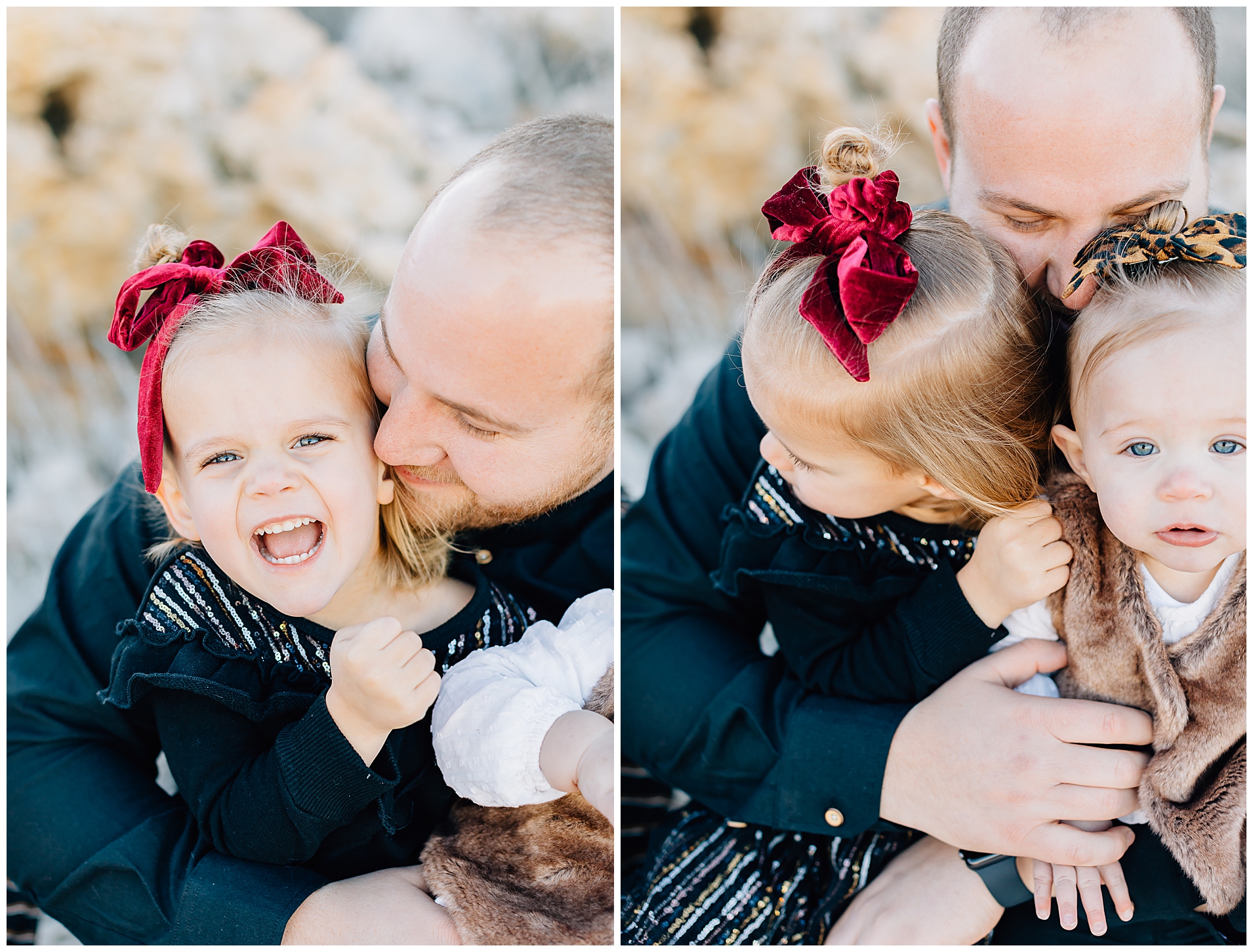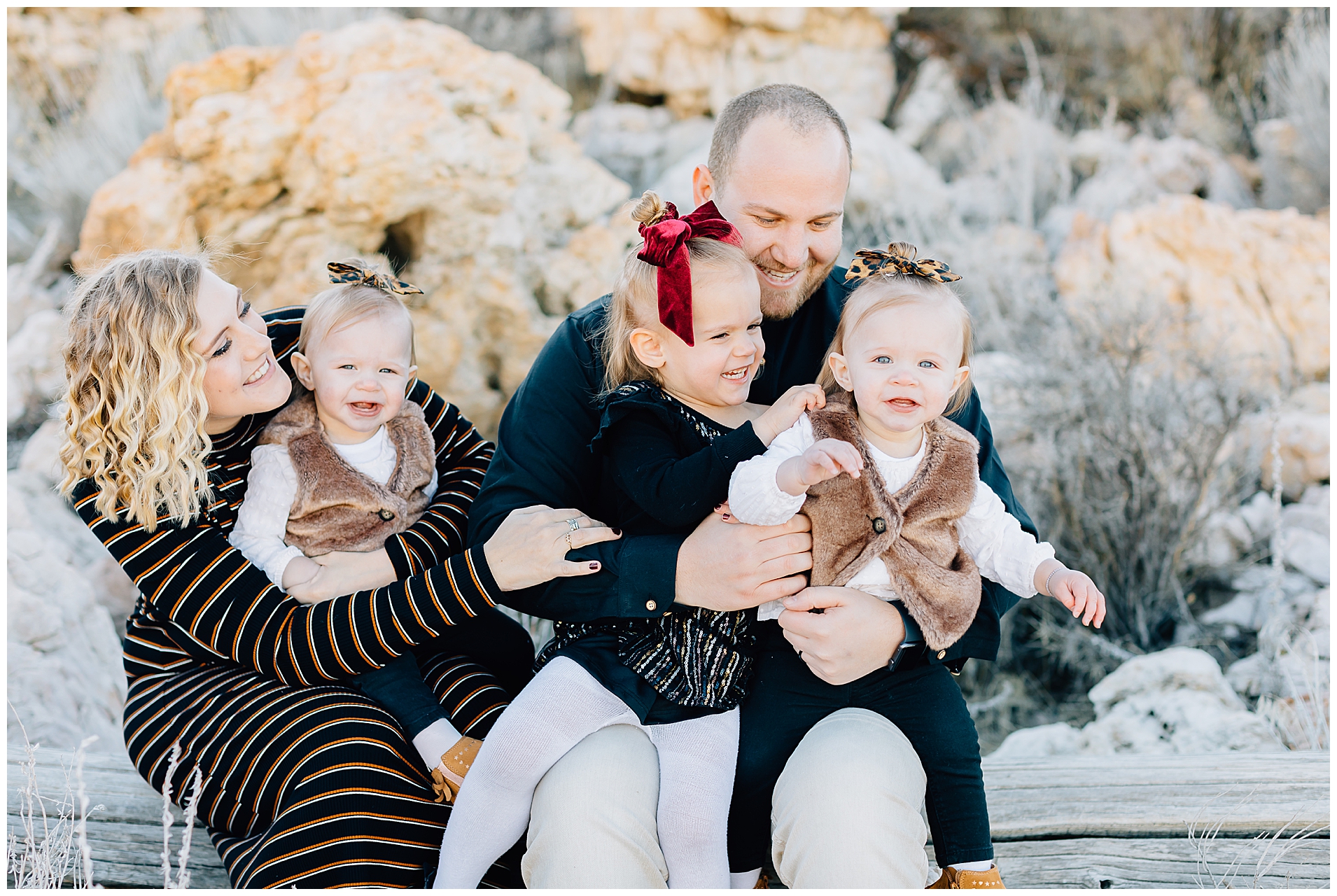 These sunny Antelope Island Family Pictures were such a joy to shoot. The Berry family has the most darling little girls and they were all SO sweet during our shoot. Antelope Island is one of my favorite late winter/early spring locations. I love the bright light and the neutral tones of the landscape.
