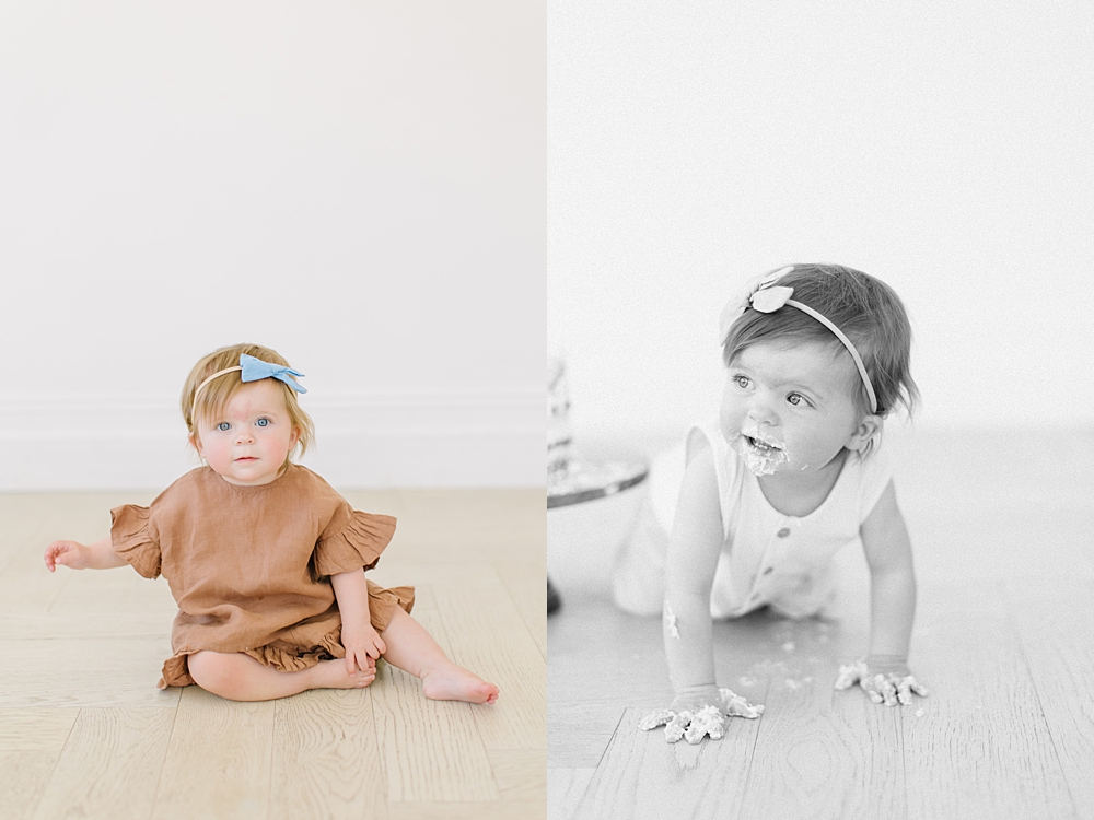 We typically do cake smash sessions as a mini session of 20 minutes. This is typically the perfect amount of time to get some portraits of just baby, plus do the cake smash portion of the session. And it’s a short enough time span that baby doesn’t get too upset.