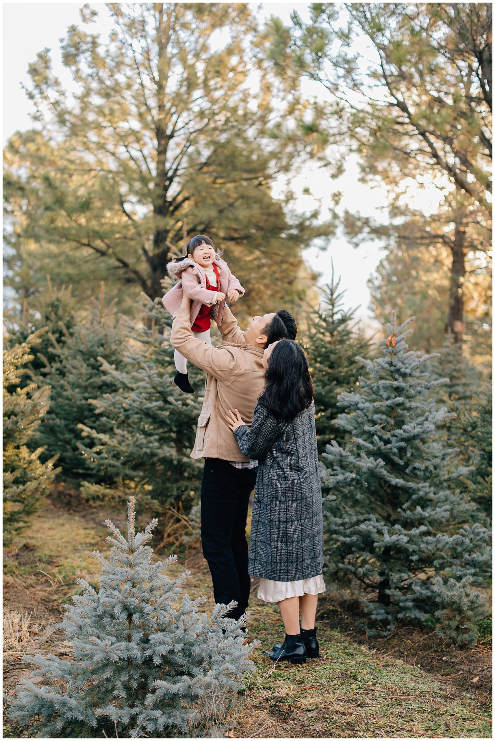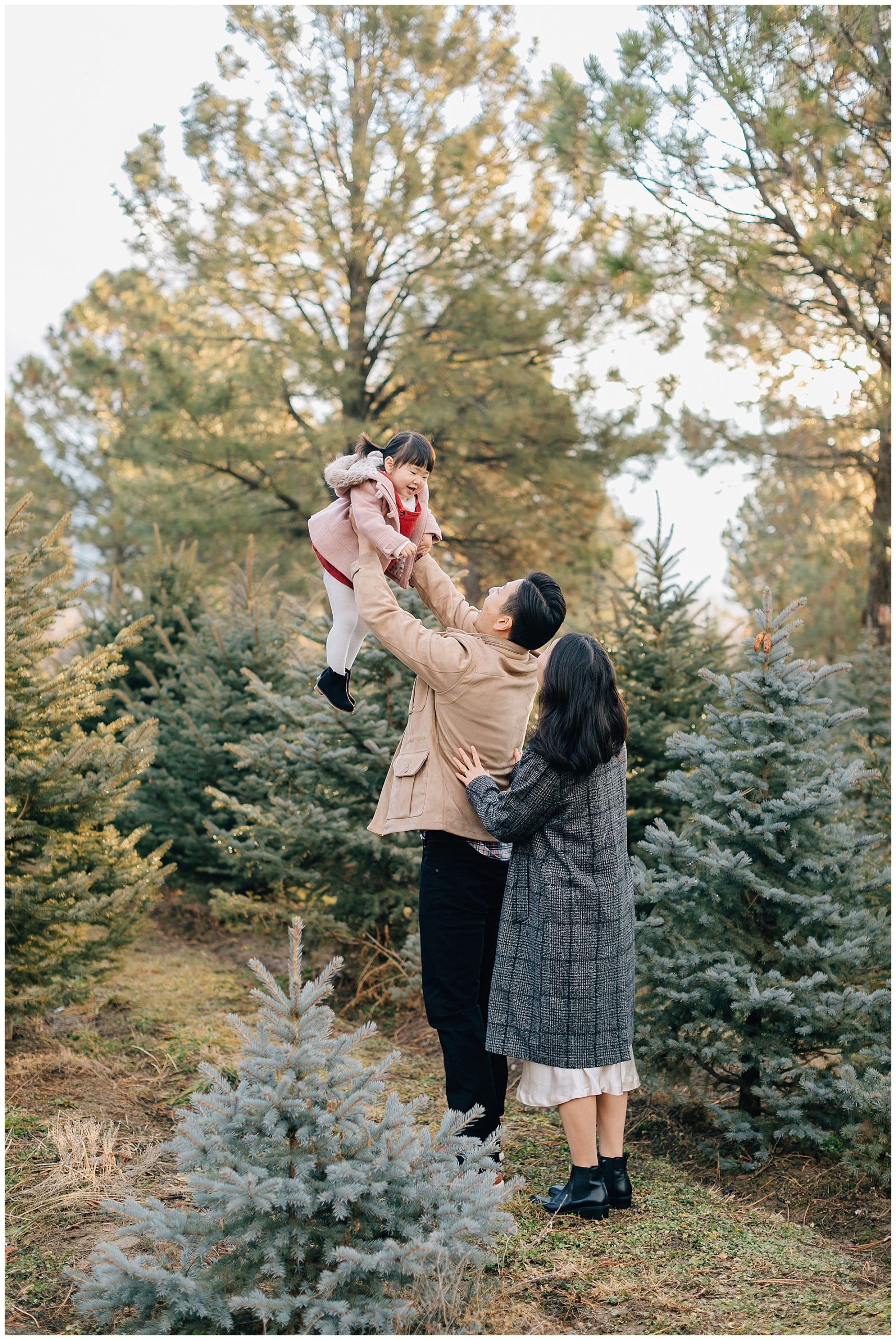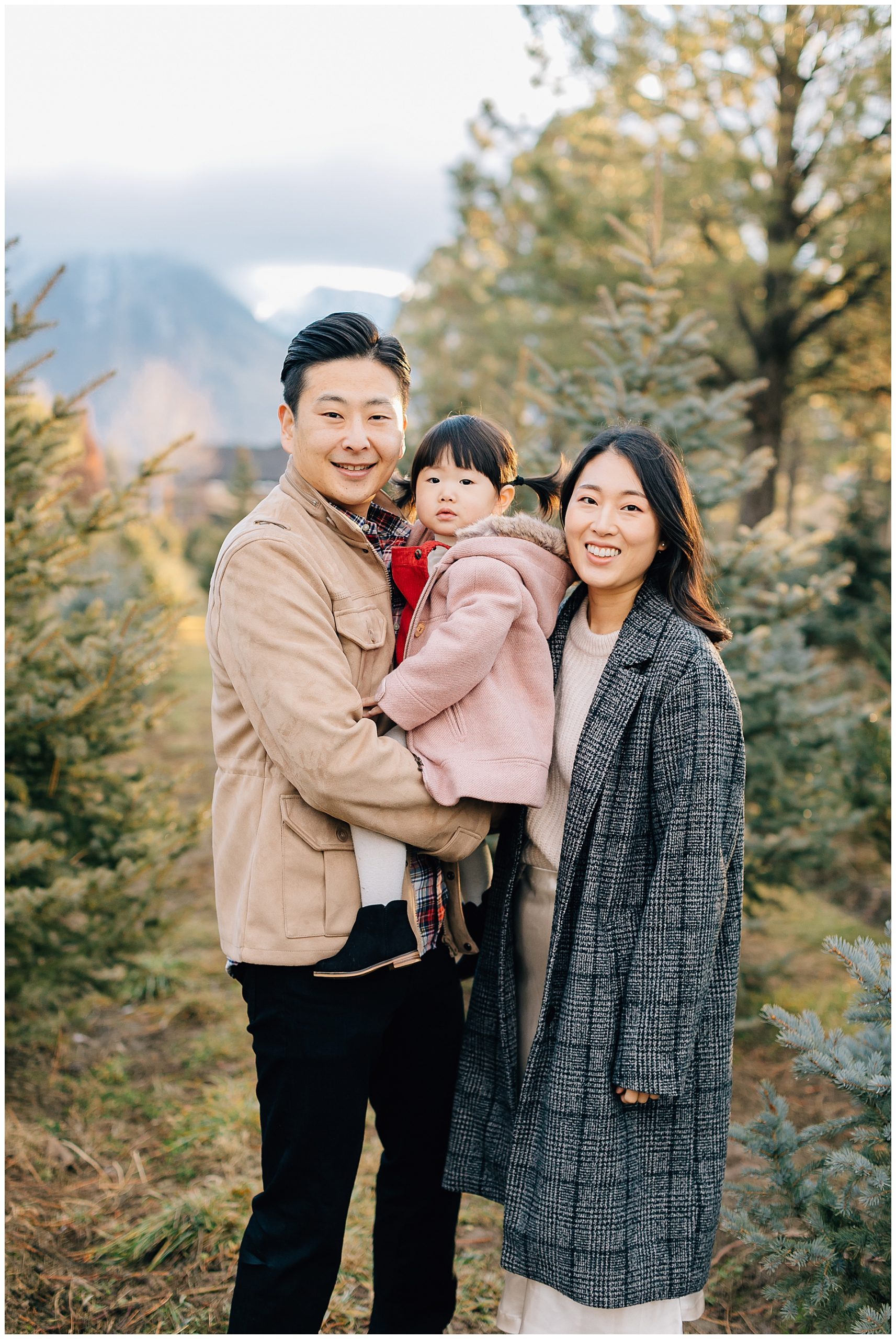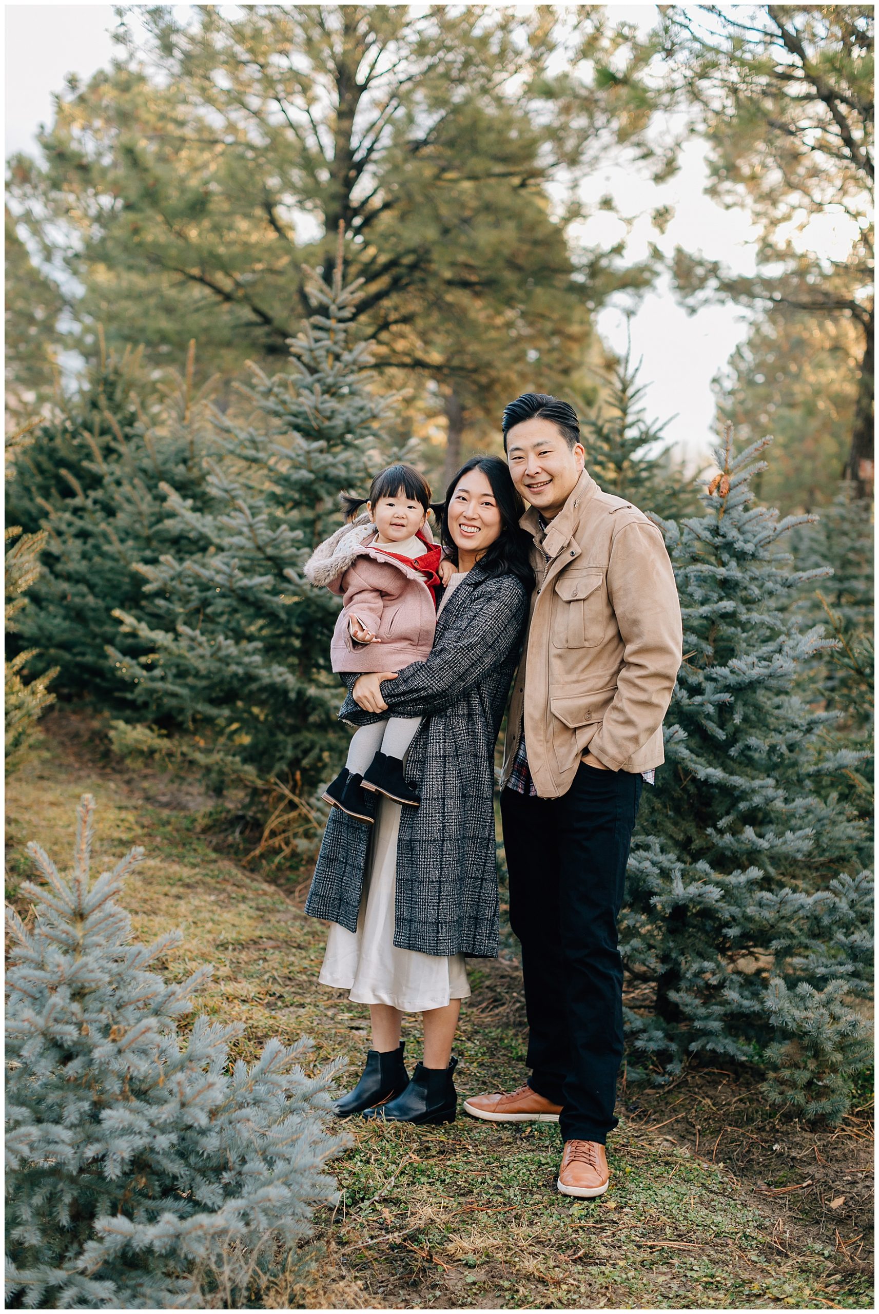 We shot their Christmas Session at Beck’s Tree farm in Alpine. We had originally planned to shoot the day prior, but it was going to be raining so we pushed it a day and got so lucky to have the most beautiful morning light. I love the colors in this session. The light was just perfect!