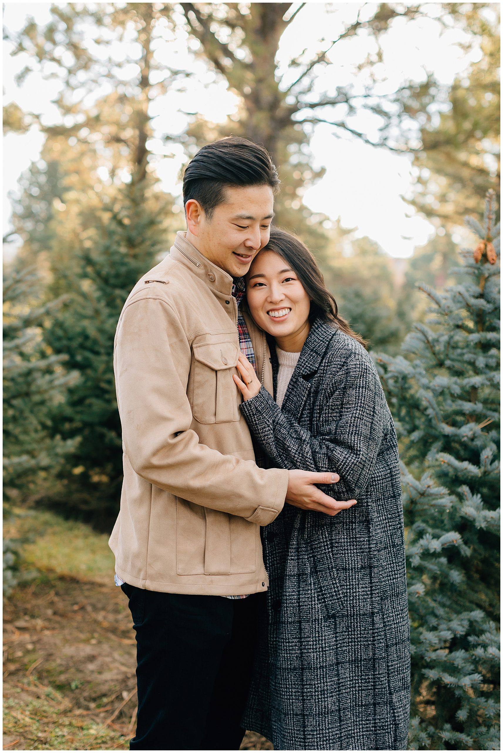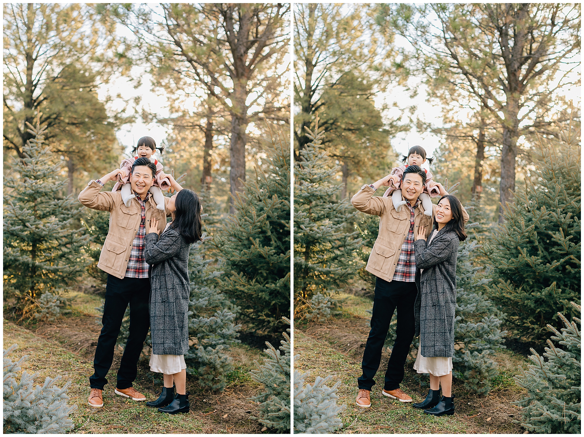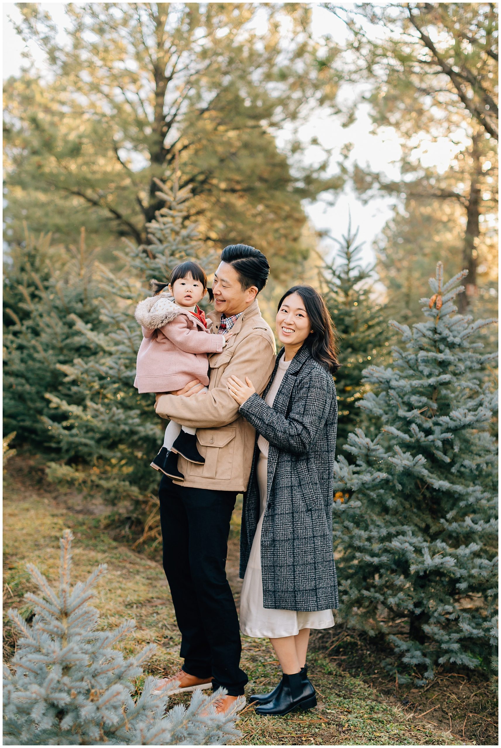 We shot their Christmas Session at Beck’s Tree farm in Alpine. We had originally planned to shoot the day prior, but it was going to be raining so we pushed it a day and got so lucky to have the most beautiful morning light. I love the colors in this session. The light was just perfect!