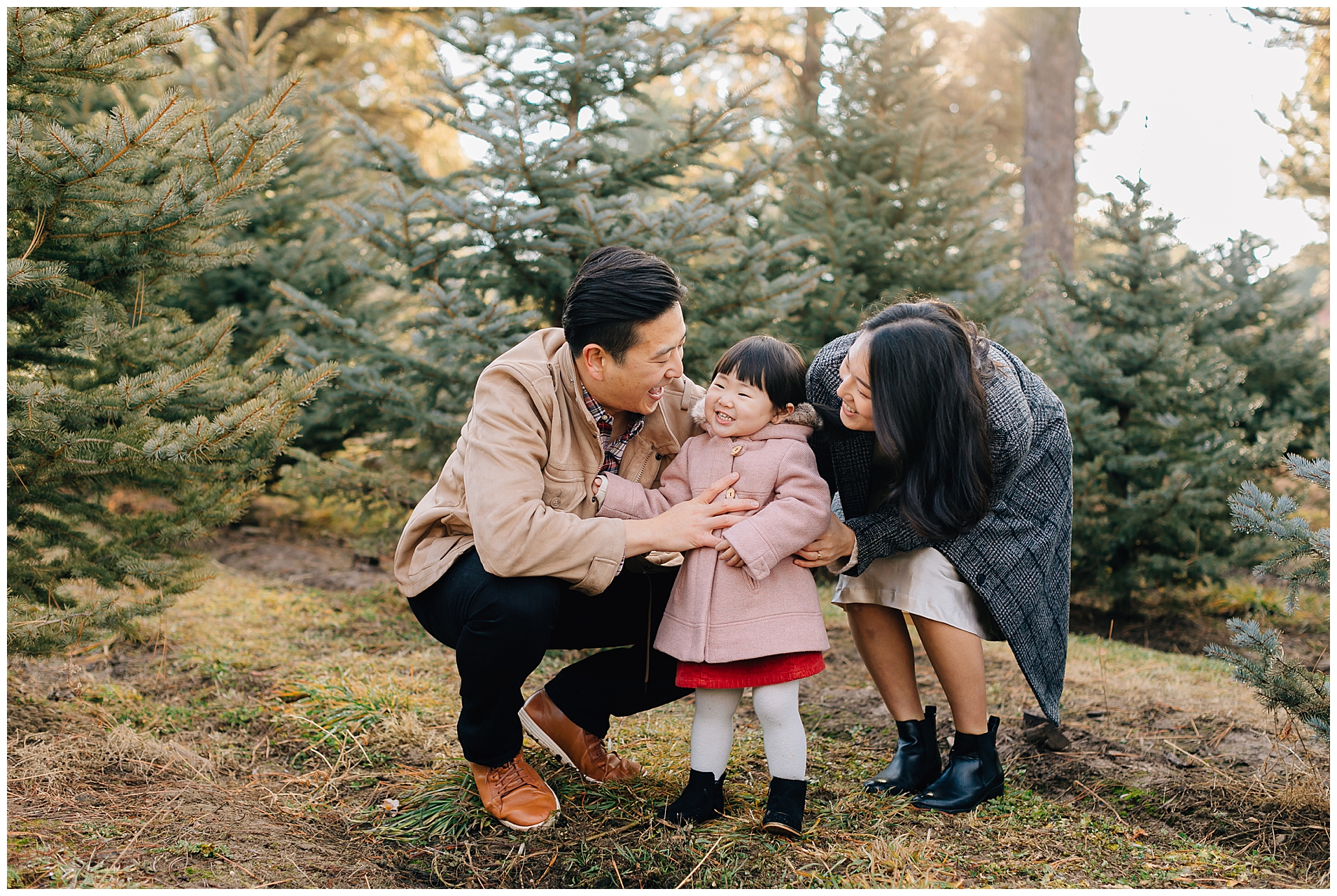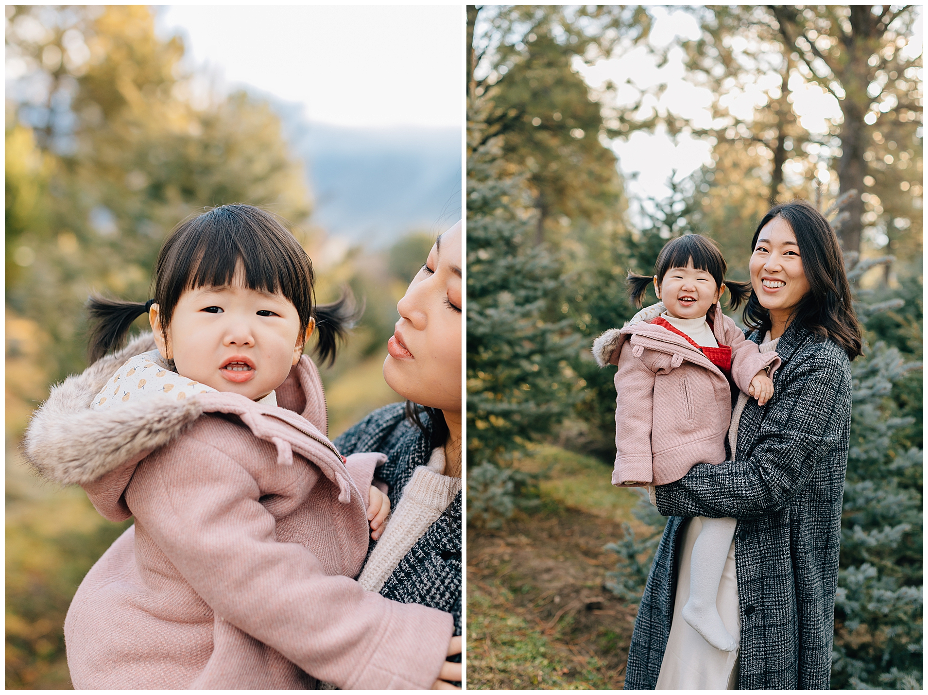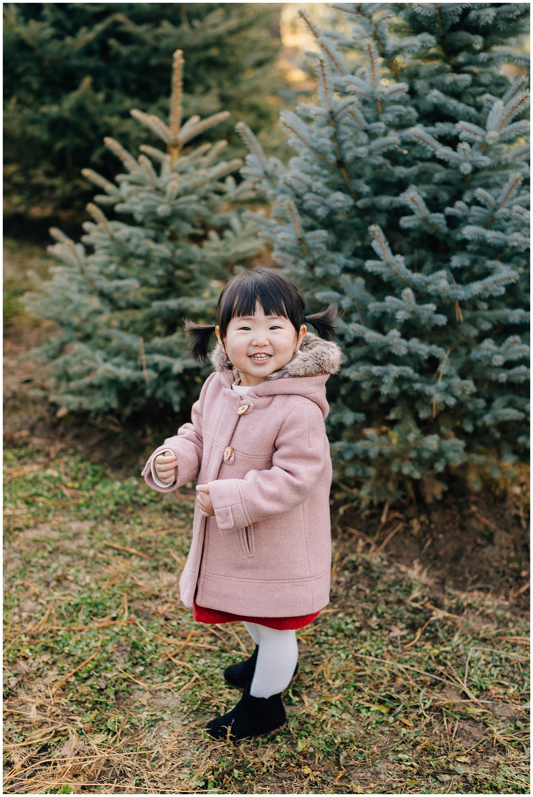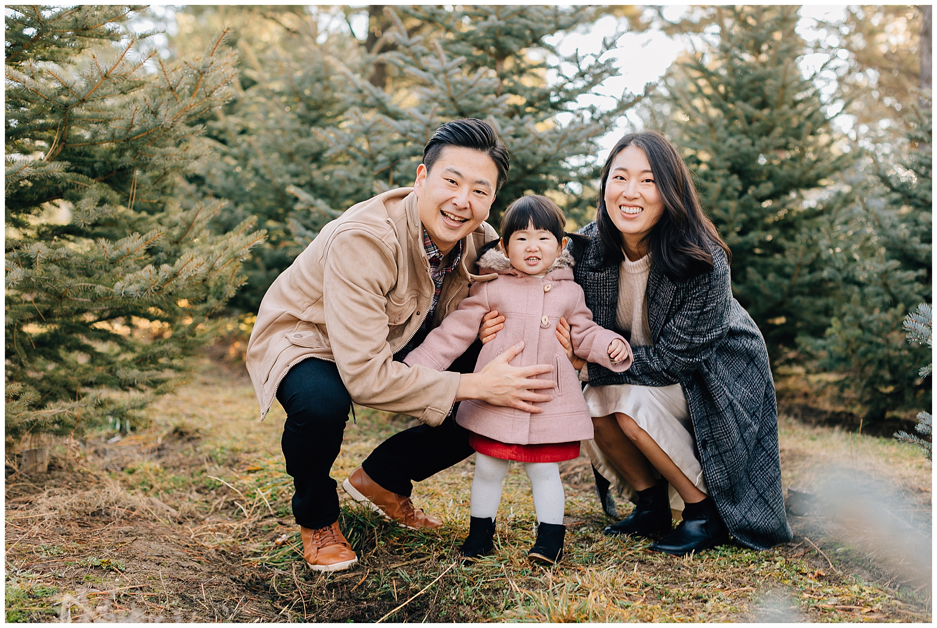 We shot their Christmas Session at Beck’s Tree farm in Alpine. We had originally planned to shoot the day prior, but it was going to be raining so we pushed it a day and got so lucky to have the most beautiful morning light. I love the colors in this session. The light was just perfect!