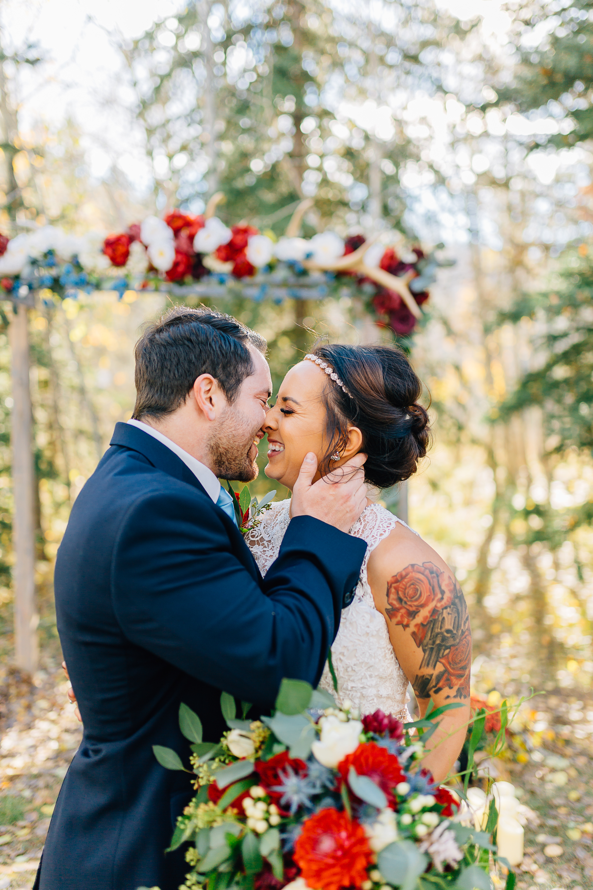 This fall cabin wedding is SO dreamy! Kadi + David got married at her family’s cabin in Kamas, Utah. Kamas is located in the mountains and was an absolute dream in October. The leaves were stunning and the air was crisp. It was an absolutely beautiful day.