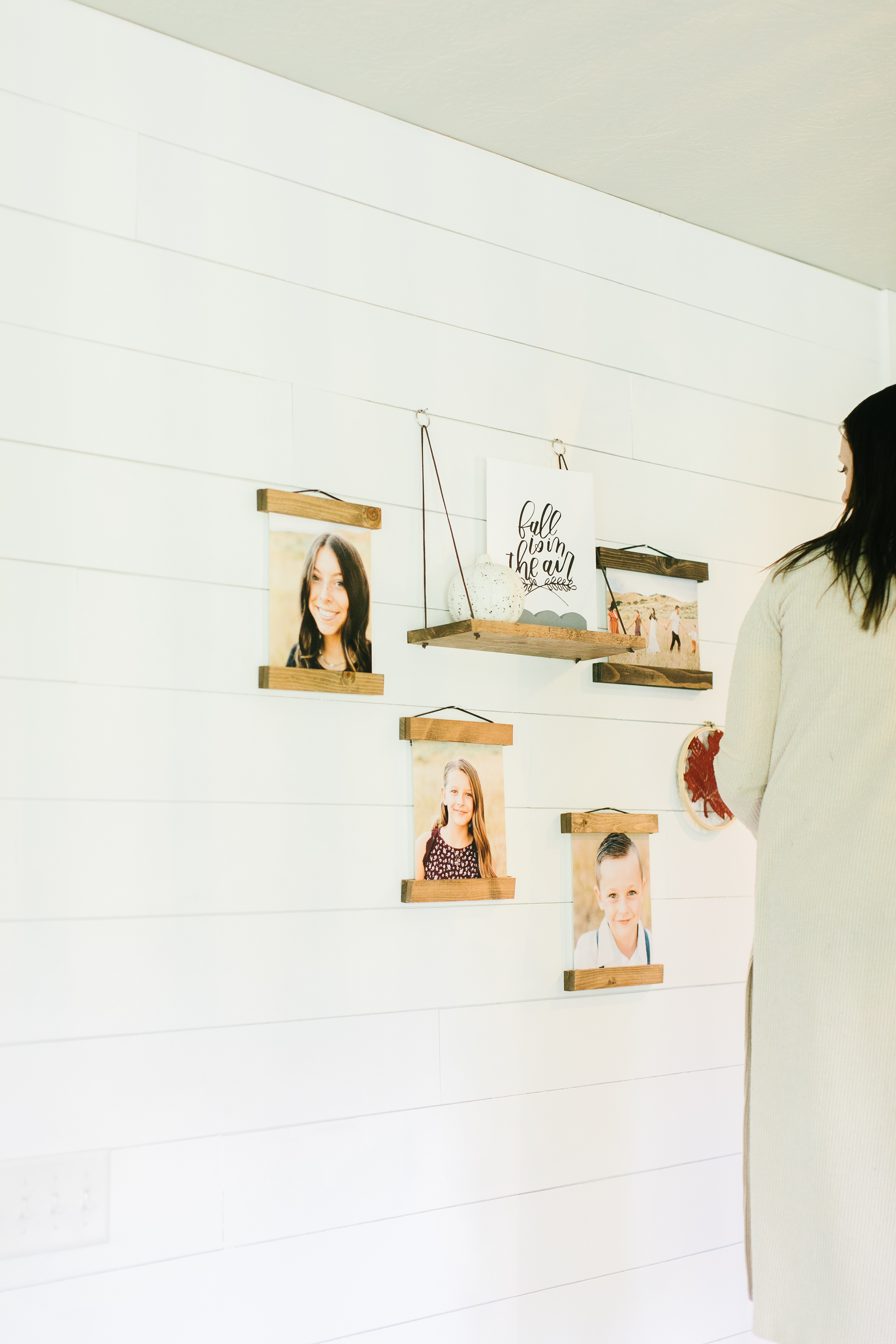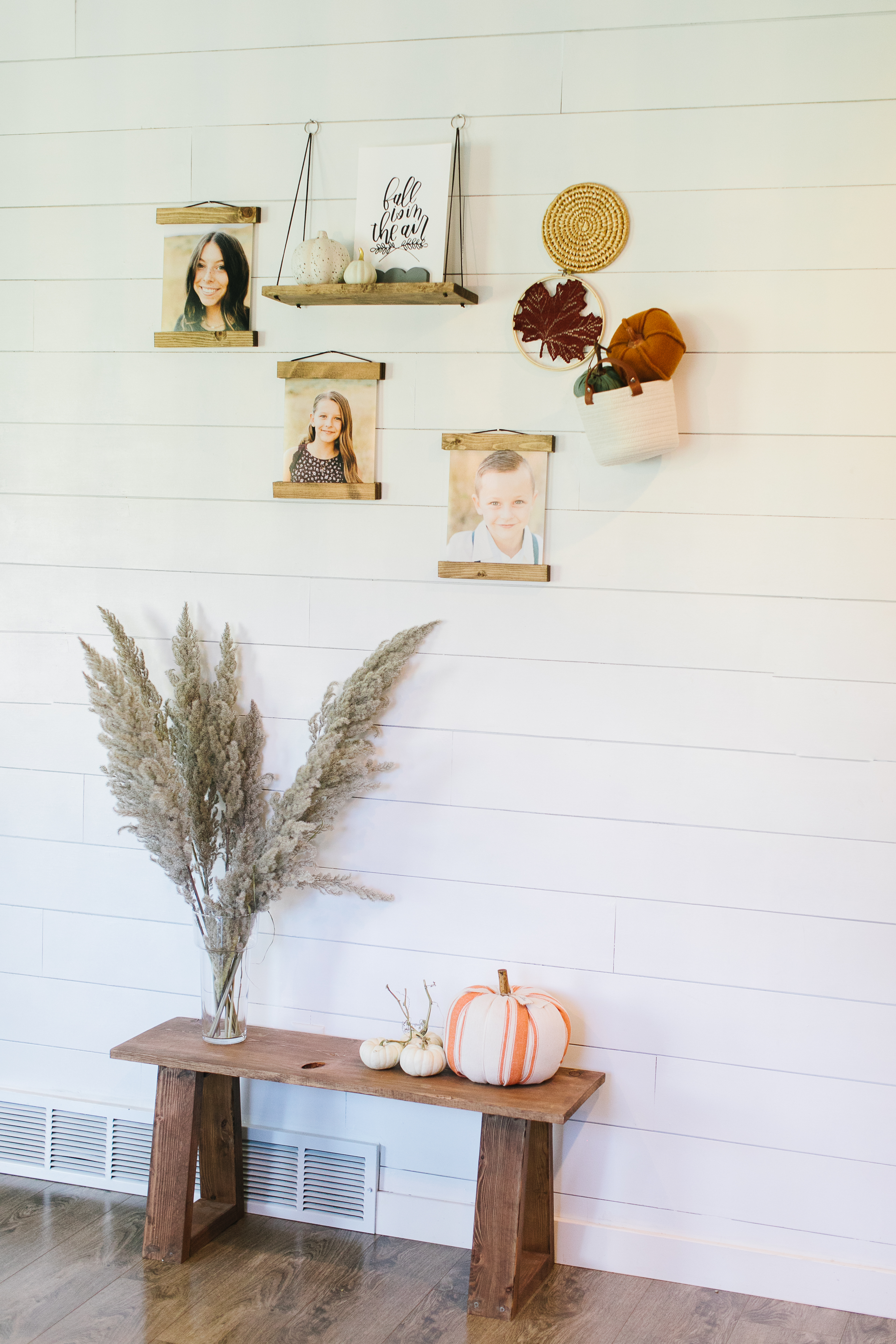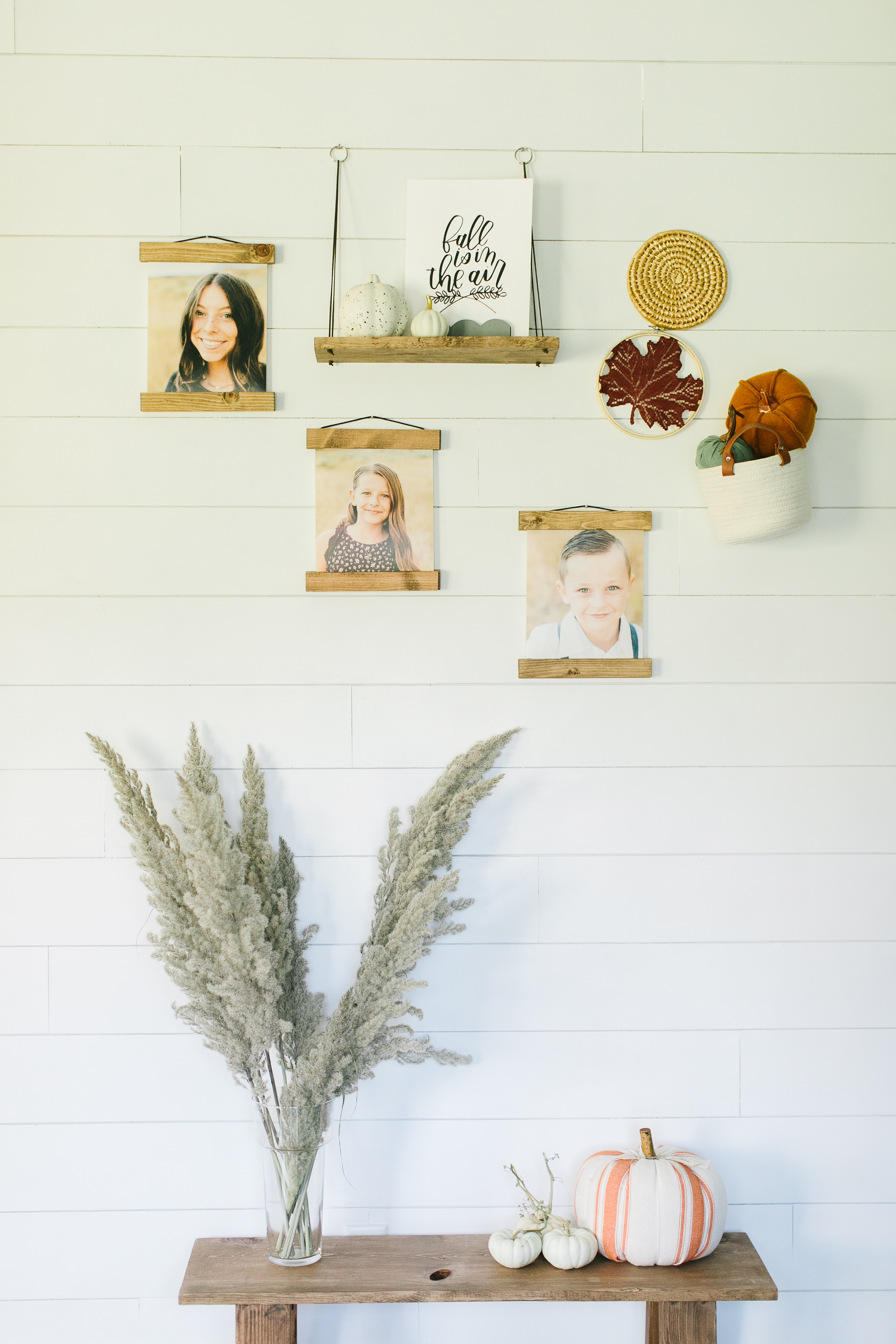 Fall gallery walls can be such a great way to bring fall into your home while featuring your family pictures. For all three of the styled walls we used Kim’s beautifully handmade frames.