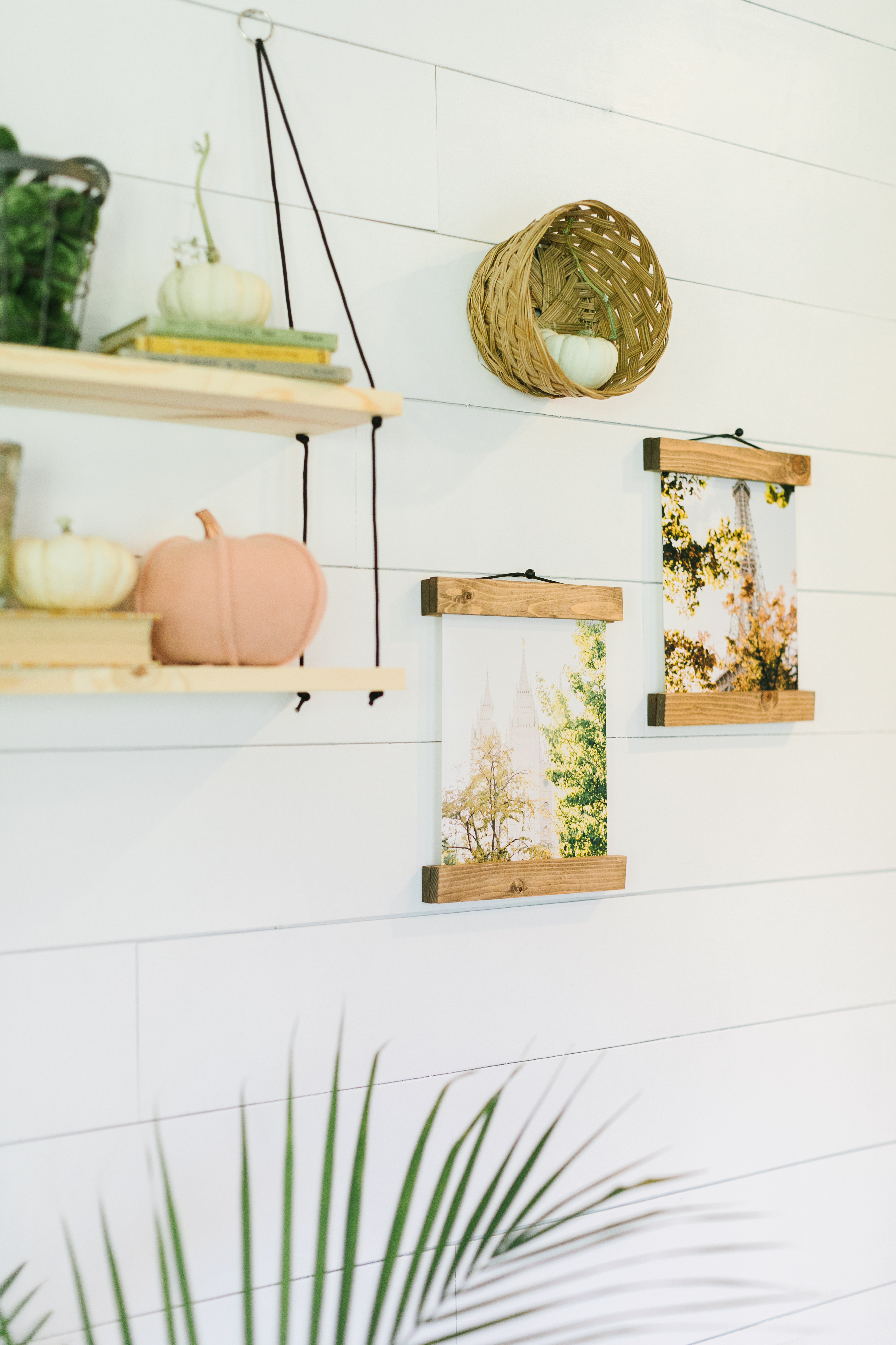 The last gallery wall featured jw Paper co‘s 8×10 magnetic frames and two of my prints that will be available in my print store (coming October 2019). Kim also incorporated various pumpkins and books to style this darling wall.