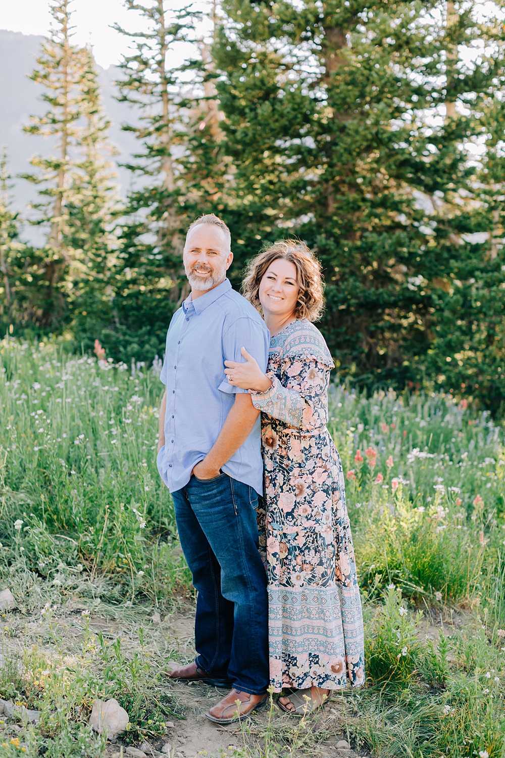 We shot their session at Albion Basin during prime wildflower season. It was beautiful and a perfect night. We started at the Pines and end on Flower Hill in the afternoon so the light was bright and pretty.