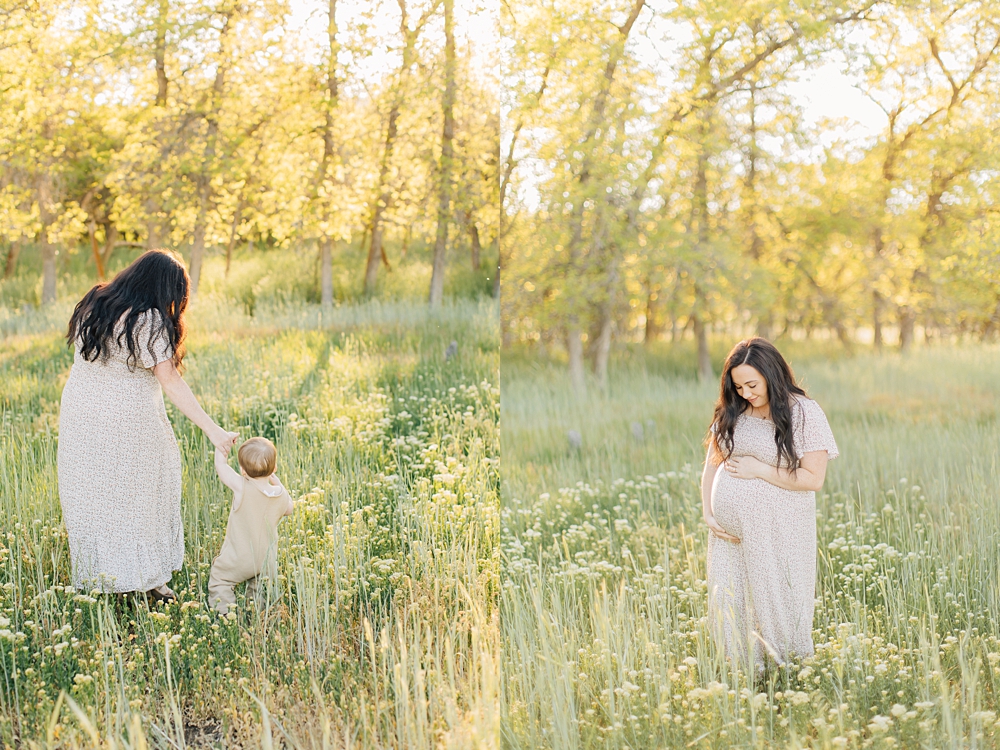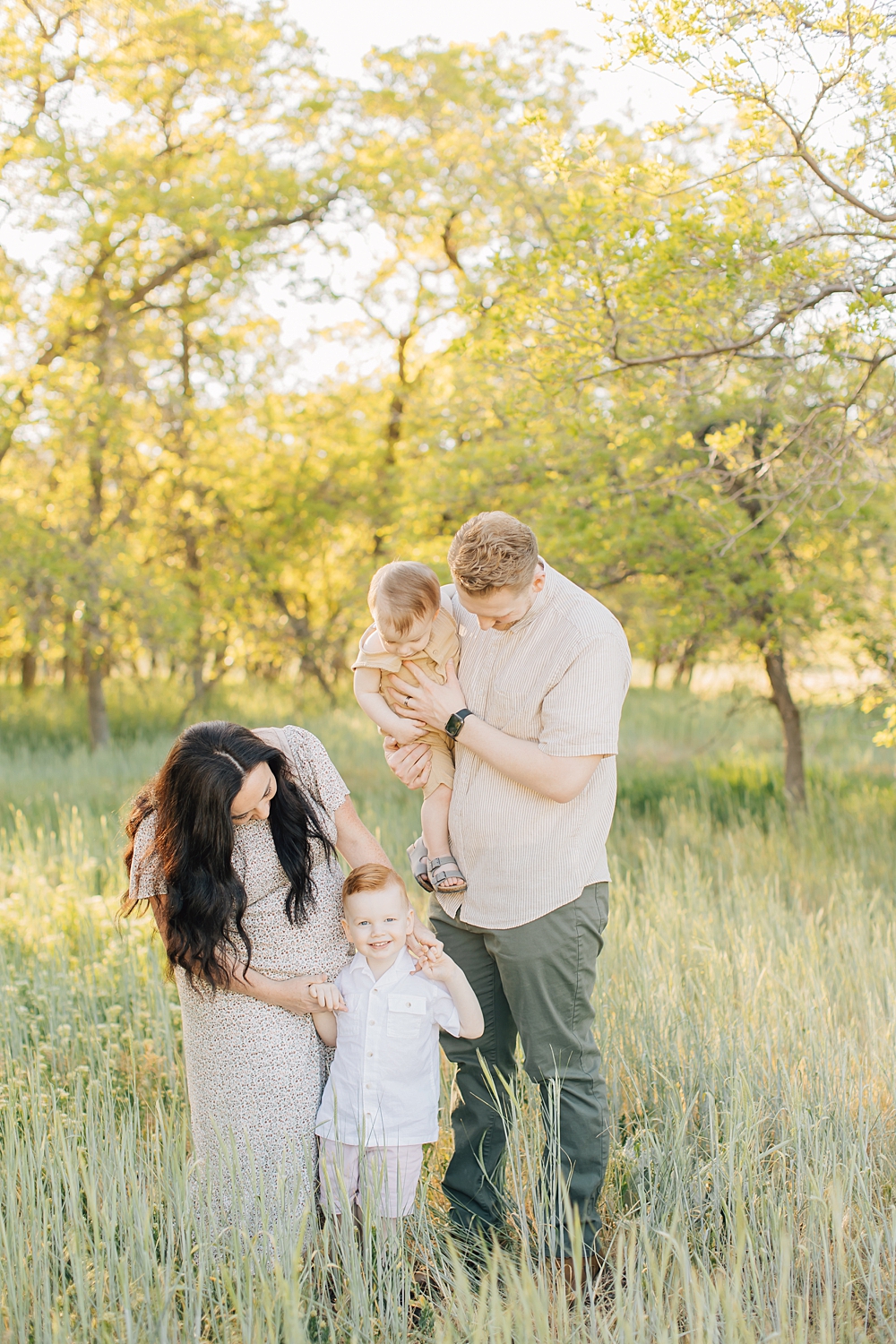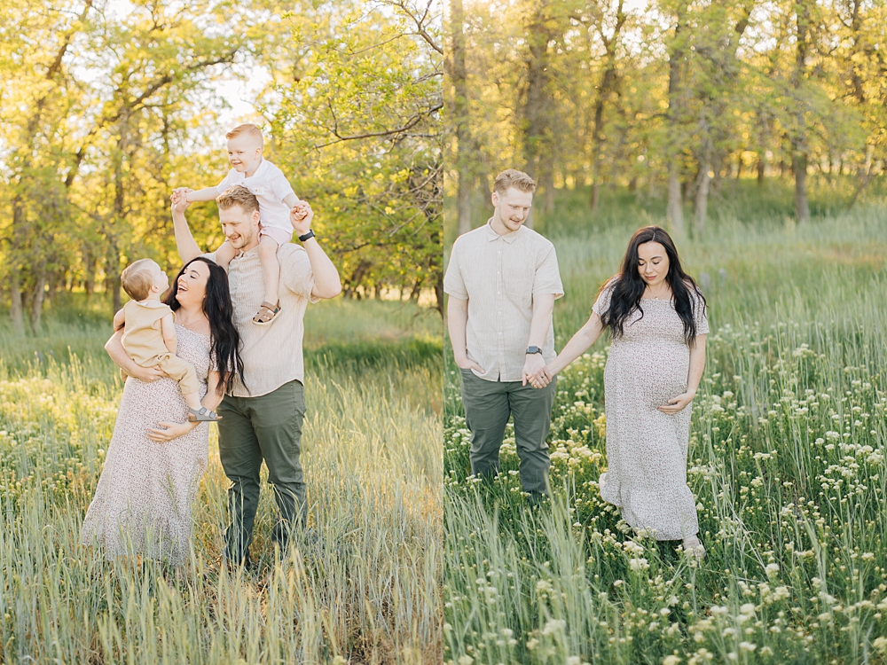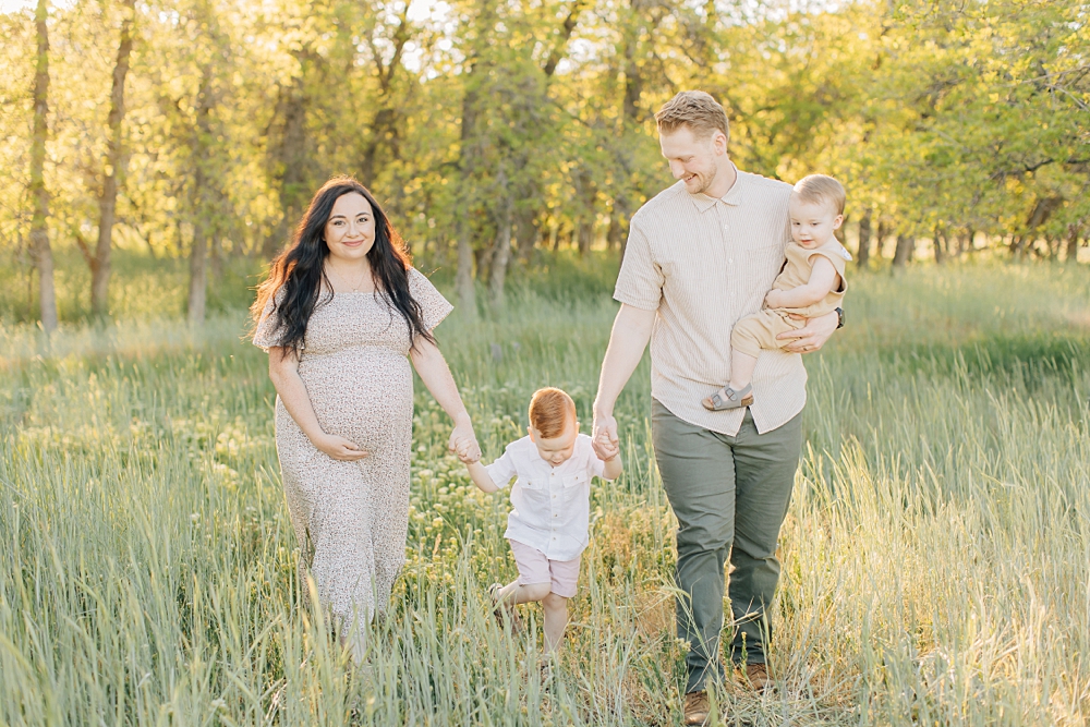 The Herriman Cove is a local spot in Herriman that is full of lush trees, tall grasses, and the most darling fishing pond. It’s a spot I’ve been shooting at for years and have always loved – especially in late spring when the grass is bright green. We shot this session as a combo family and maternity session and I’m just loving the light on these.