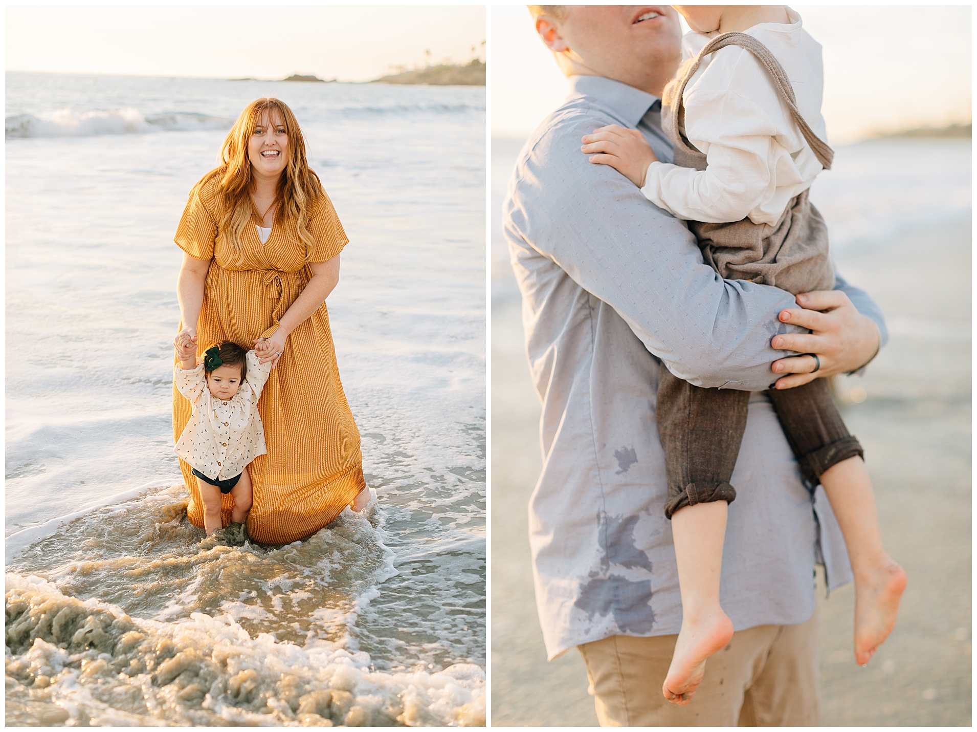 My favorite part of this session (aside from the light and my cute family) was that we got to shoot while we were barefoot. I love being barefoot and I love the ocean. Being able to run around barefoot and play in the water for family pictures was seriously the best.