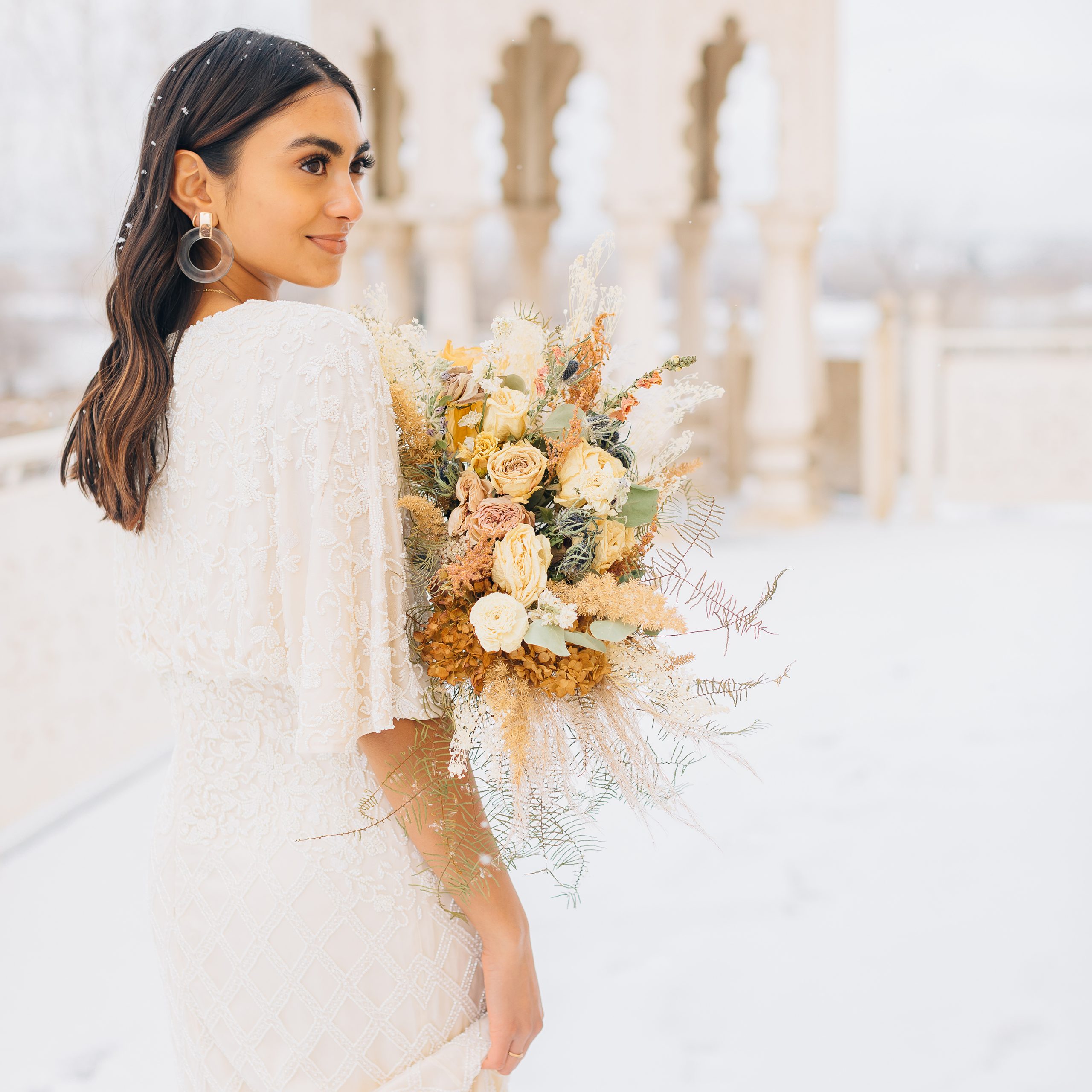 Next I had to find a bouquet. Because we were shooting in the of winter and I was going for a more modern look, I wanted a dead bouquet. Marianne from Bushel and a Peck Floral Design did NOT disappoint. The bouquet was incredible and was everything I imagined for the shoot.