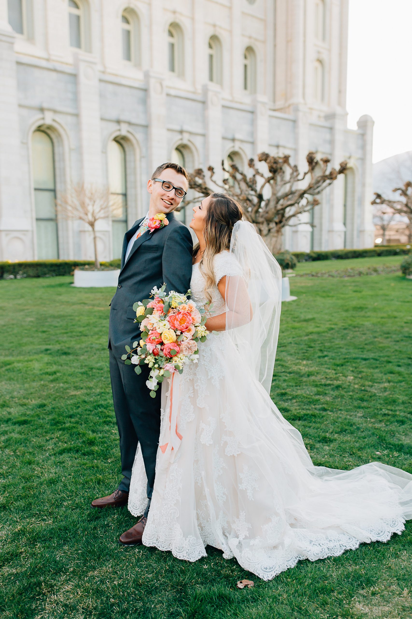 This March Wedding at the Salt Lake Temple is one of my favorites! I just love Megan and Kyle. They were complete opposites and yet, absolutely perfect for each other. The Salt Lake Temple in March is stunning and just about to blossom and bloom everywhere.