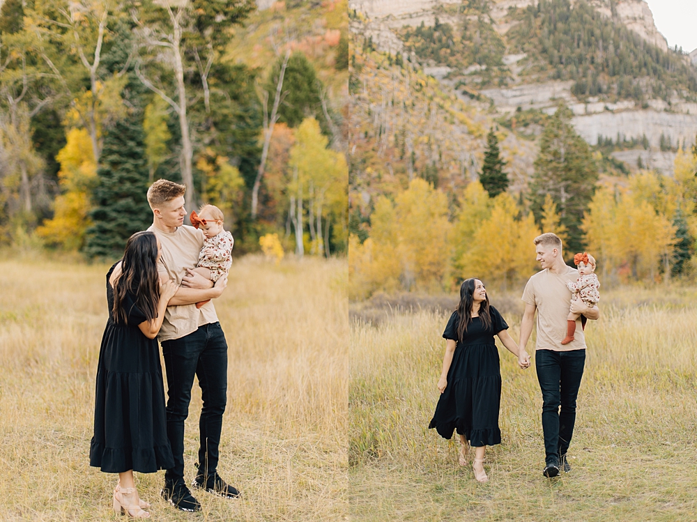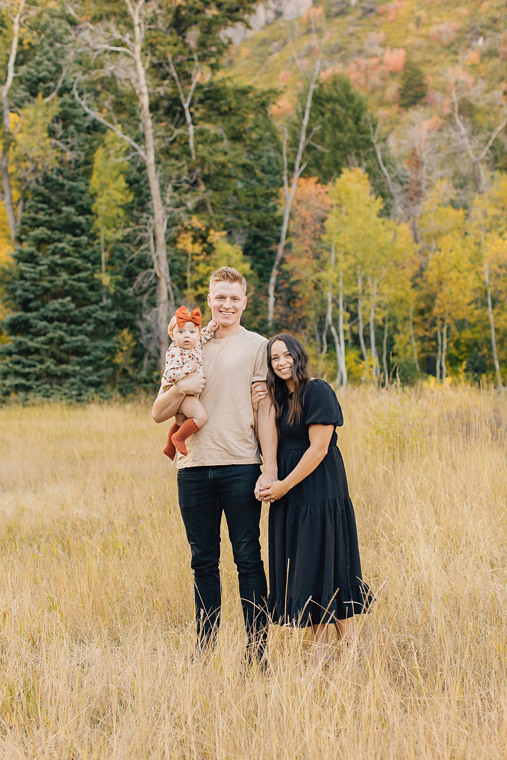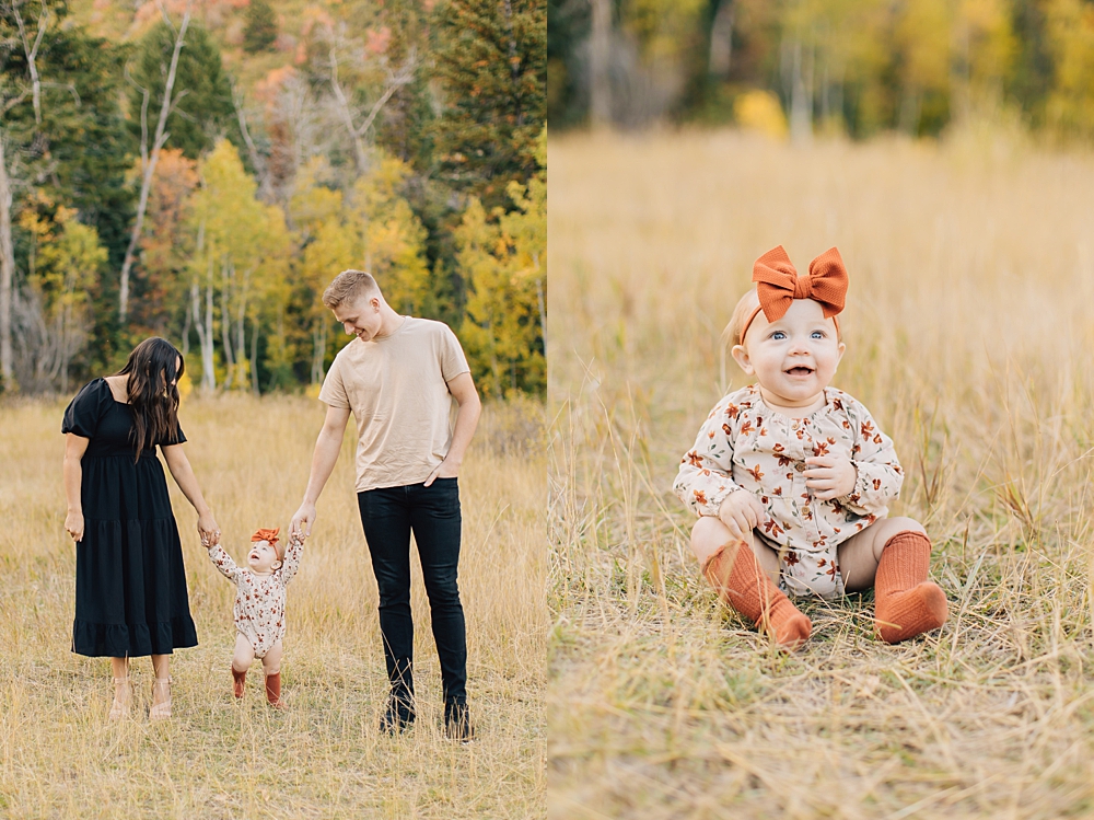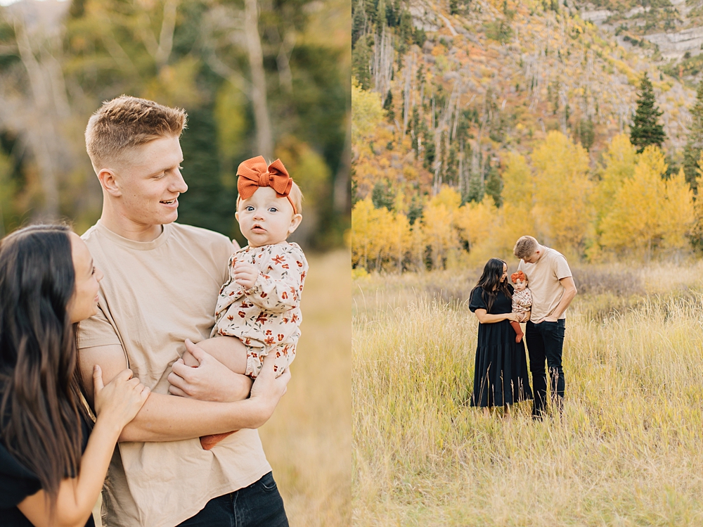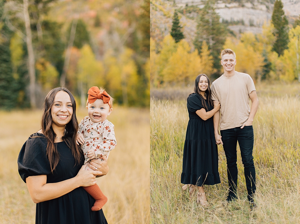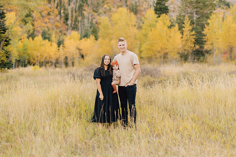As a Provo Family Photographer we love Aspen Grove Family Pictures and it is the PERFECT location for fall. Aspen Grove is up Provo Canyon and is full of beautiful, yellow aspen trees and tall brown grass. This beautiful session was shot by our darling photographer, Missy.