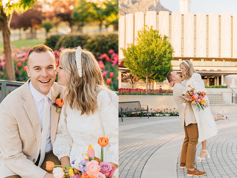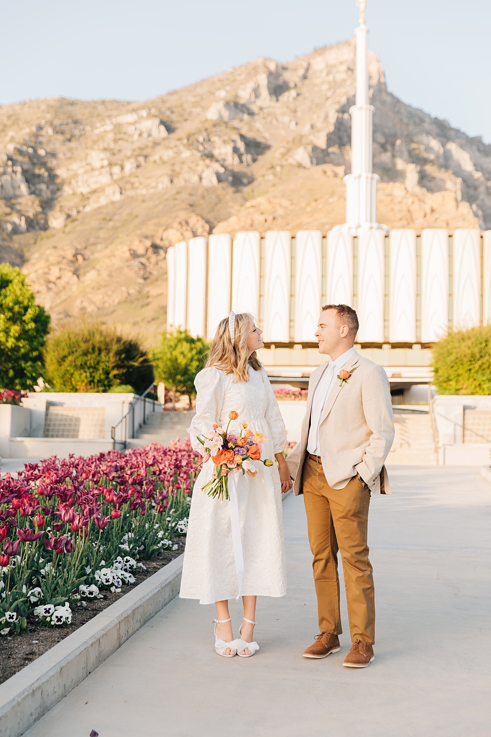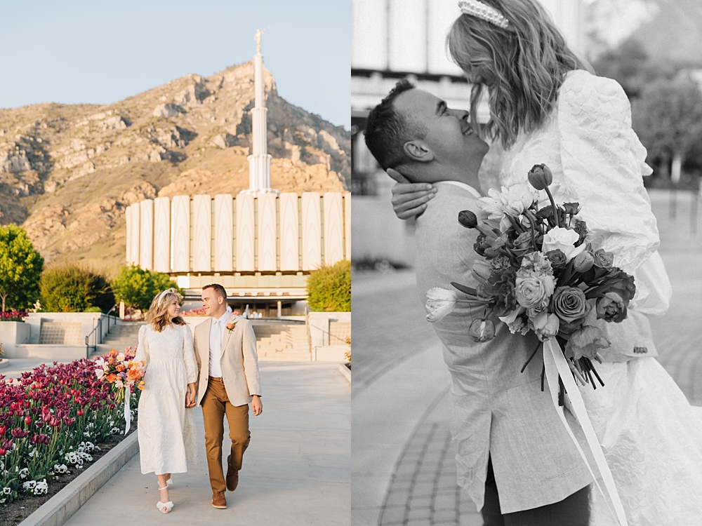 This Provo Temple Bridals session is SO joyful and fun. We’re obsessed with all the bright colors and the beautiful evening light. And how classic is the original Provo Temple? We love this unique session! This session was shot by Amalia. To view more of her work check out her portfolio.