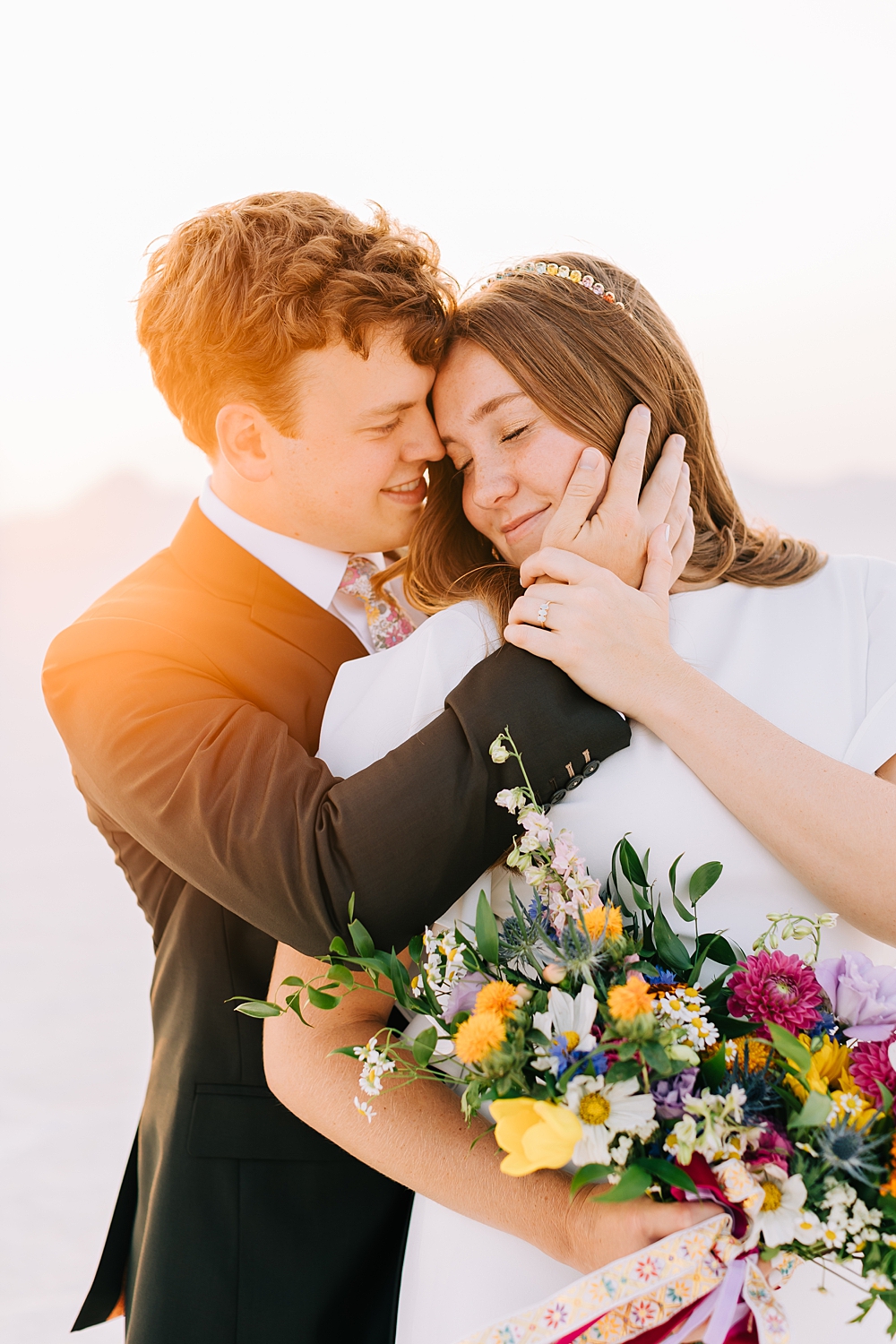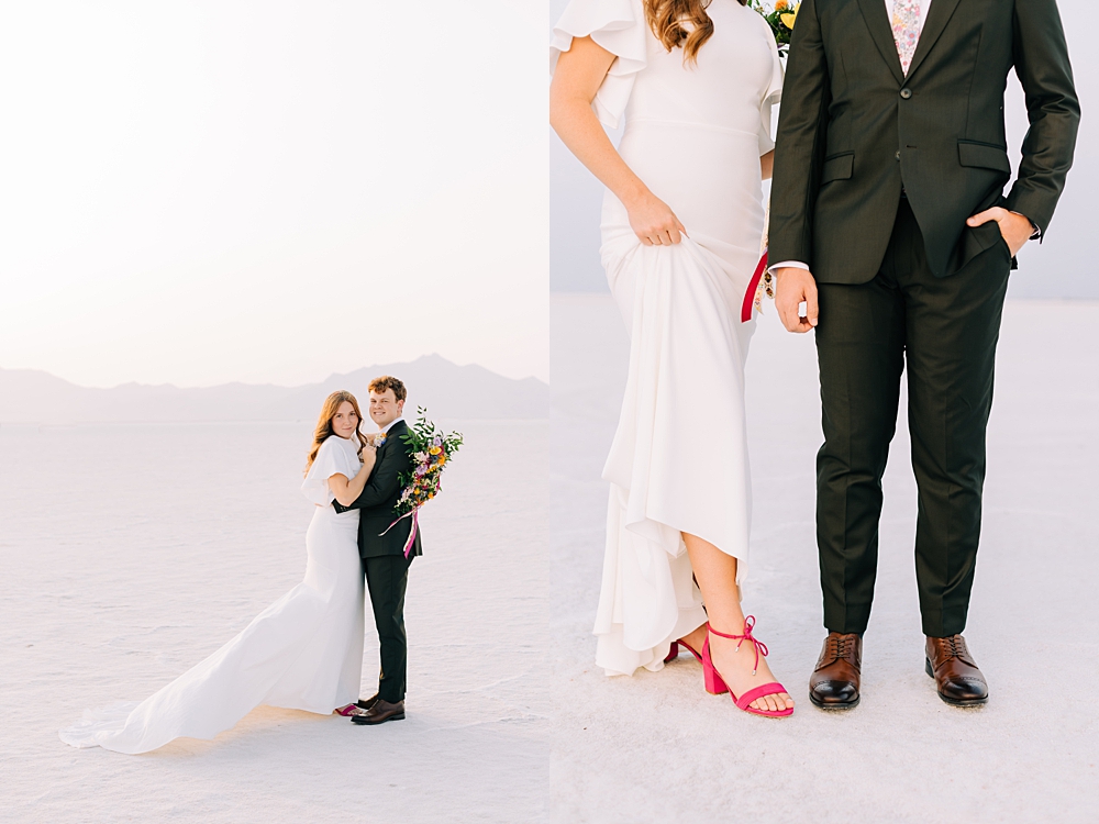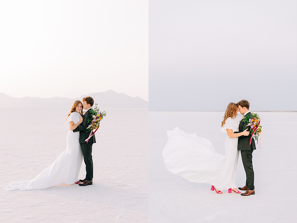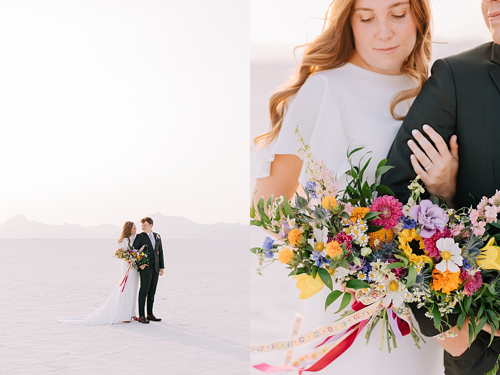 Abby’s bouquet was inspired by wildflowers and was full of color. It was absolutely breathtaking and was the absolute perfect contrast to the white on white backdrop of the Salt Flats in Wendover.