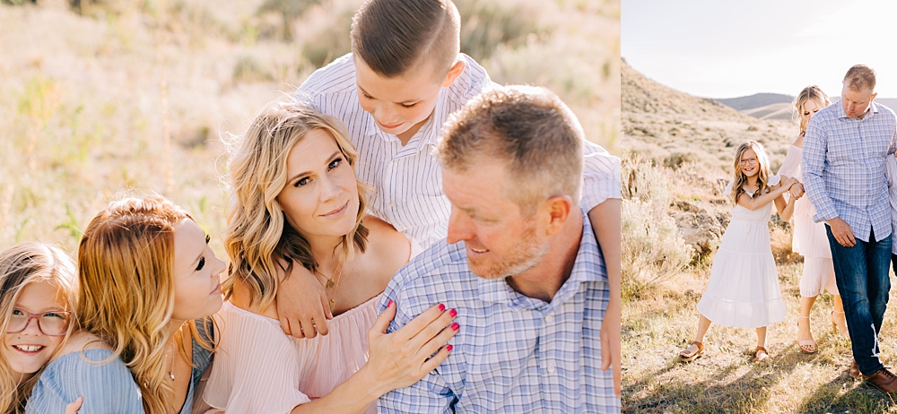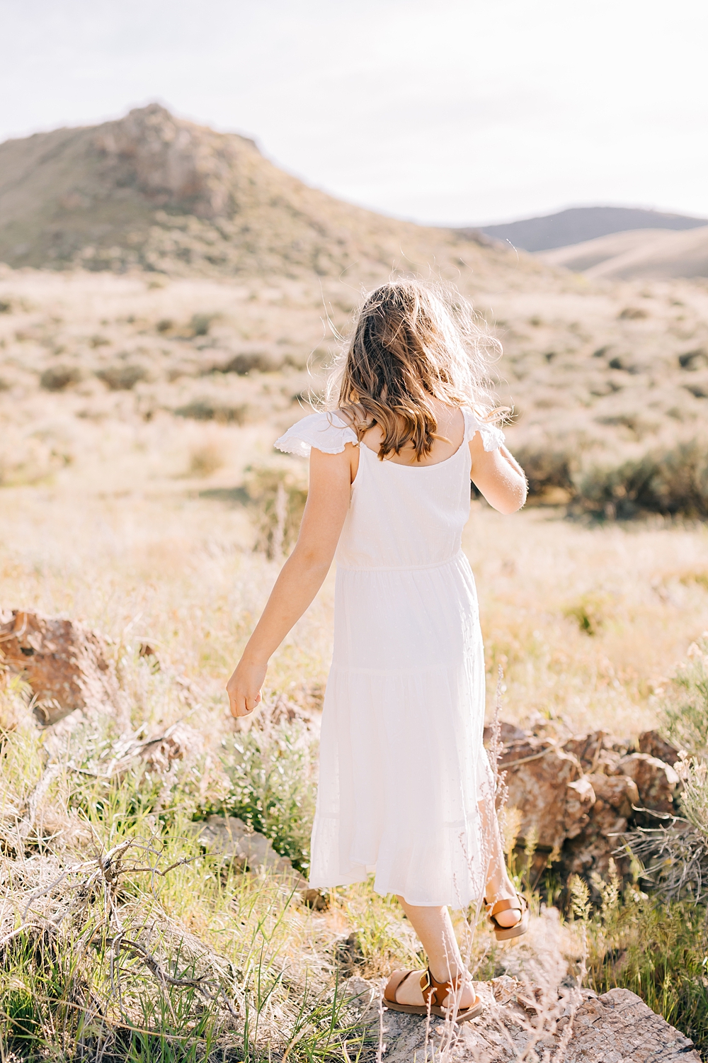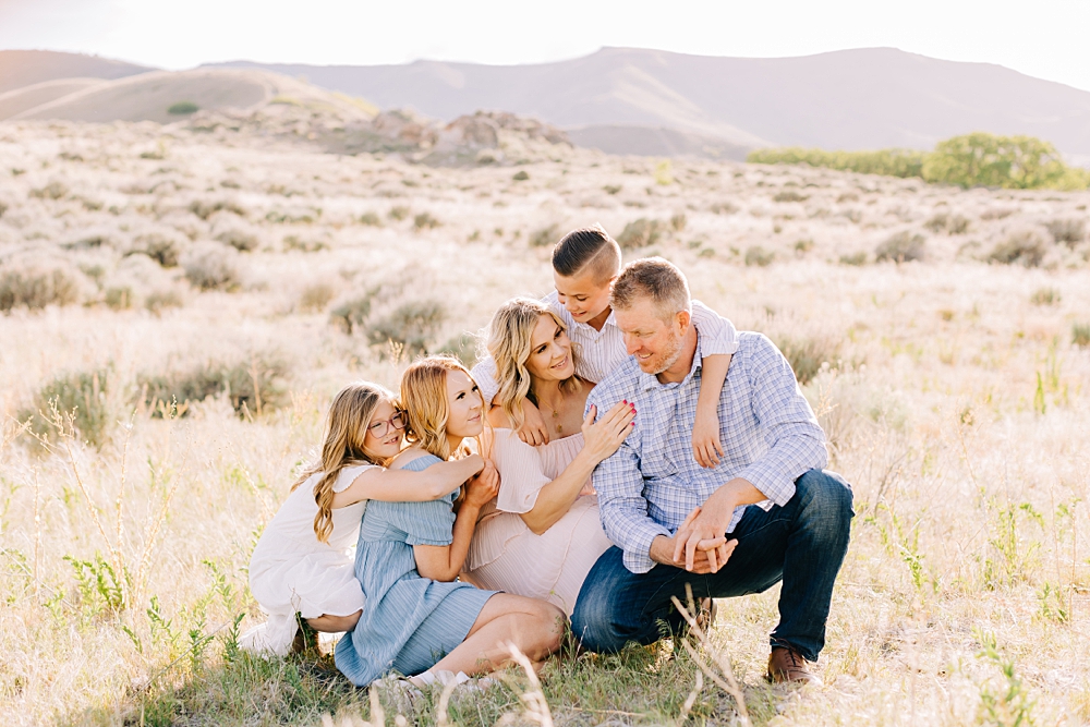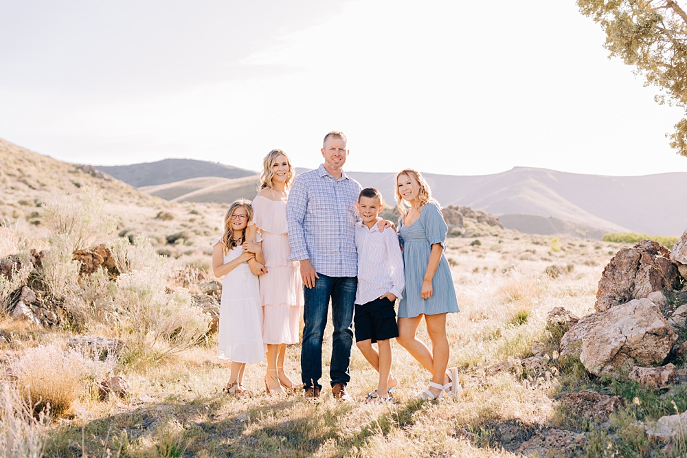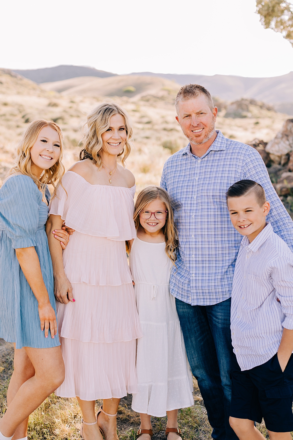 Summer Family Pictures are easily my favorite. The light is so beautiful and stays up so long, the colors are perfect, and the temperatures make shooting in the evening a dream. We shot these summer family pictures in Herriman which is part of Salt Lake County. The rolling hills of Herriman provided the perfect light and a unique, rocky backdrop.