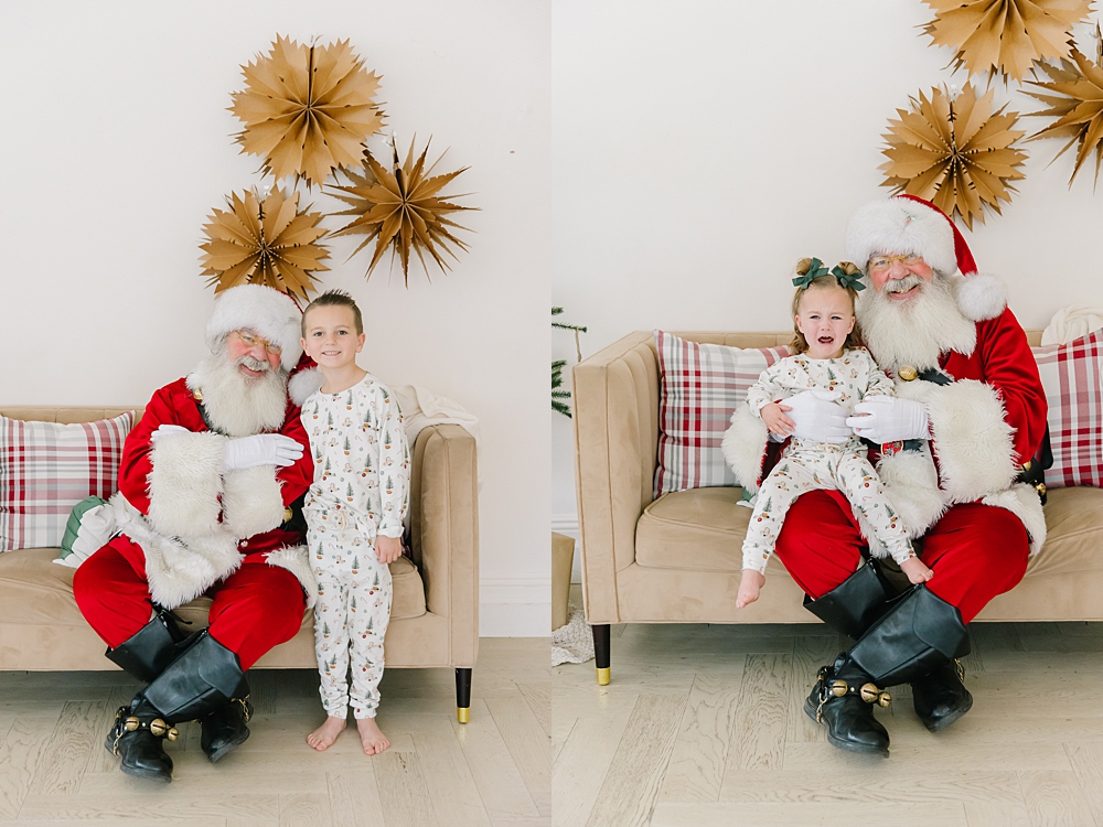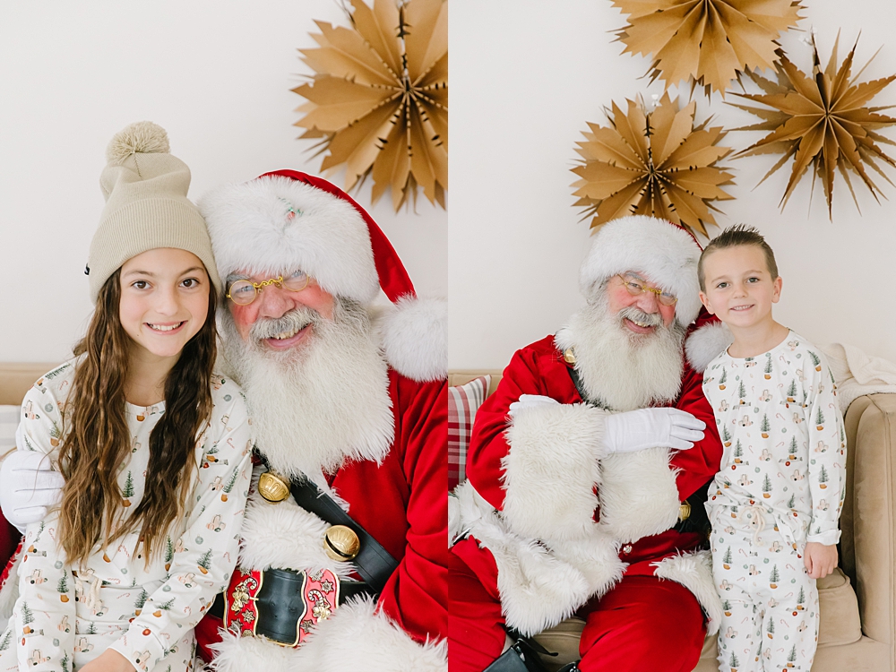 Santa came to my studio this December and it was absolutely magical! Santa and I spent two days photographing the sweetest interactions with lots of kiddos. This sweet family found the cutest jammies from Shop Sova and looked absolutely darling.