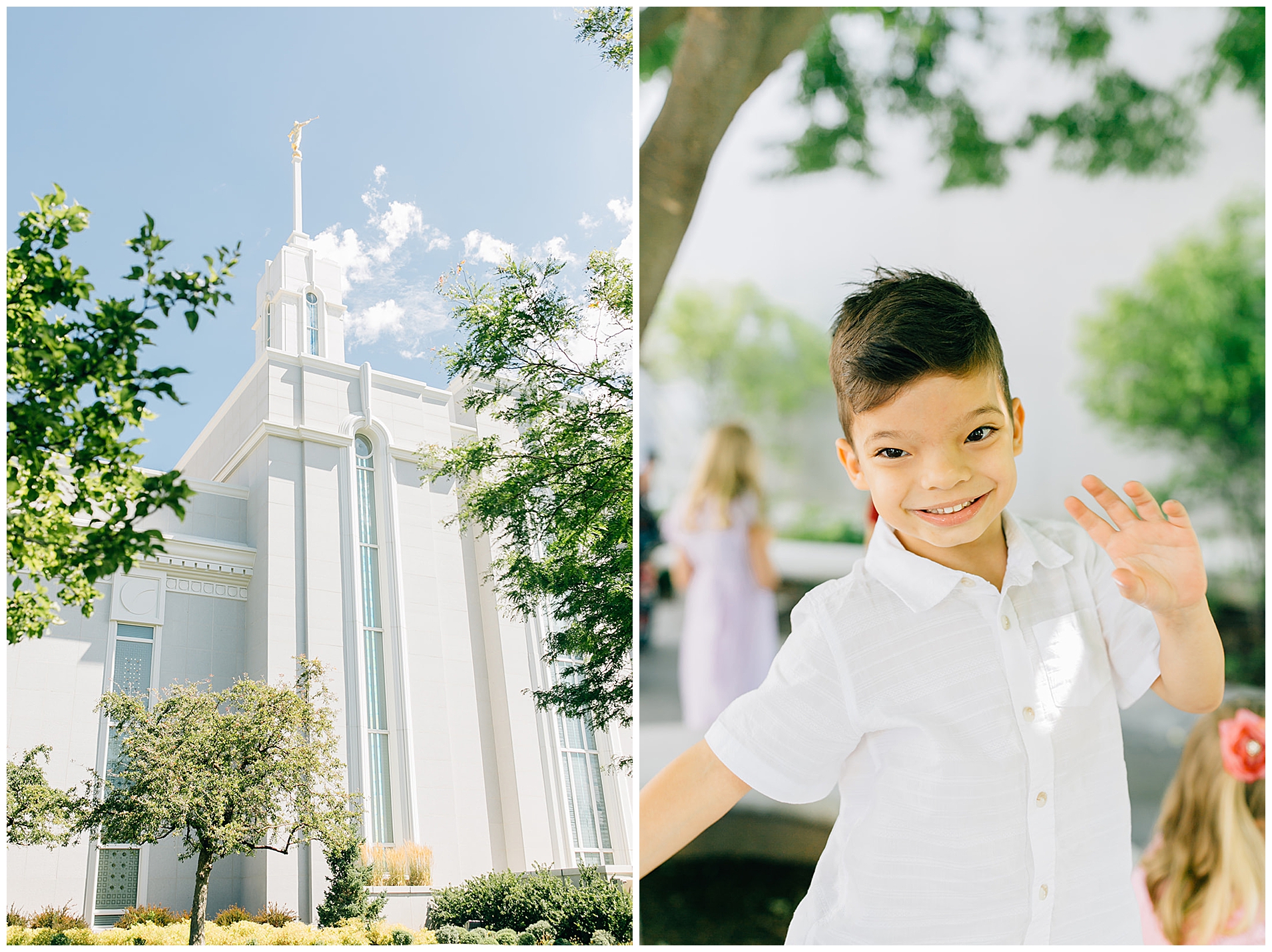 Mount Timpanogos Temple Sealing Pictures have been a goal of mine forever! I love shooting at the temple and getting to shoot family pictures at the temple is seriously SO fun!! The Harmon family adopted sweet little M and got to be sealed to him. I was lucky enough to be able to take sealing pictures for them outside of the temple. We took pictures with their whole family and then with their little family. M is SO loved. There were so many people full of love supporting them on this special day.