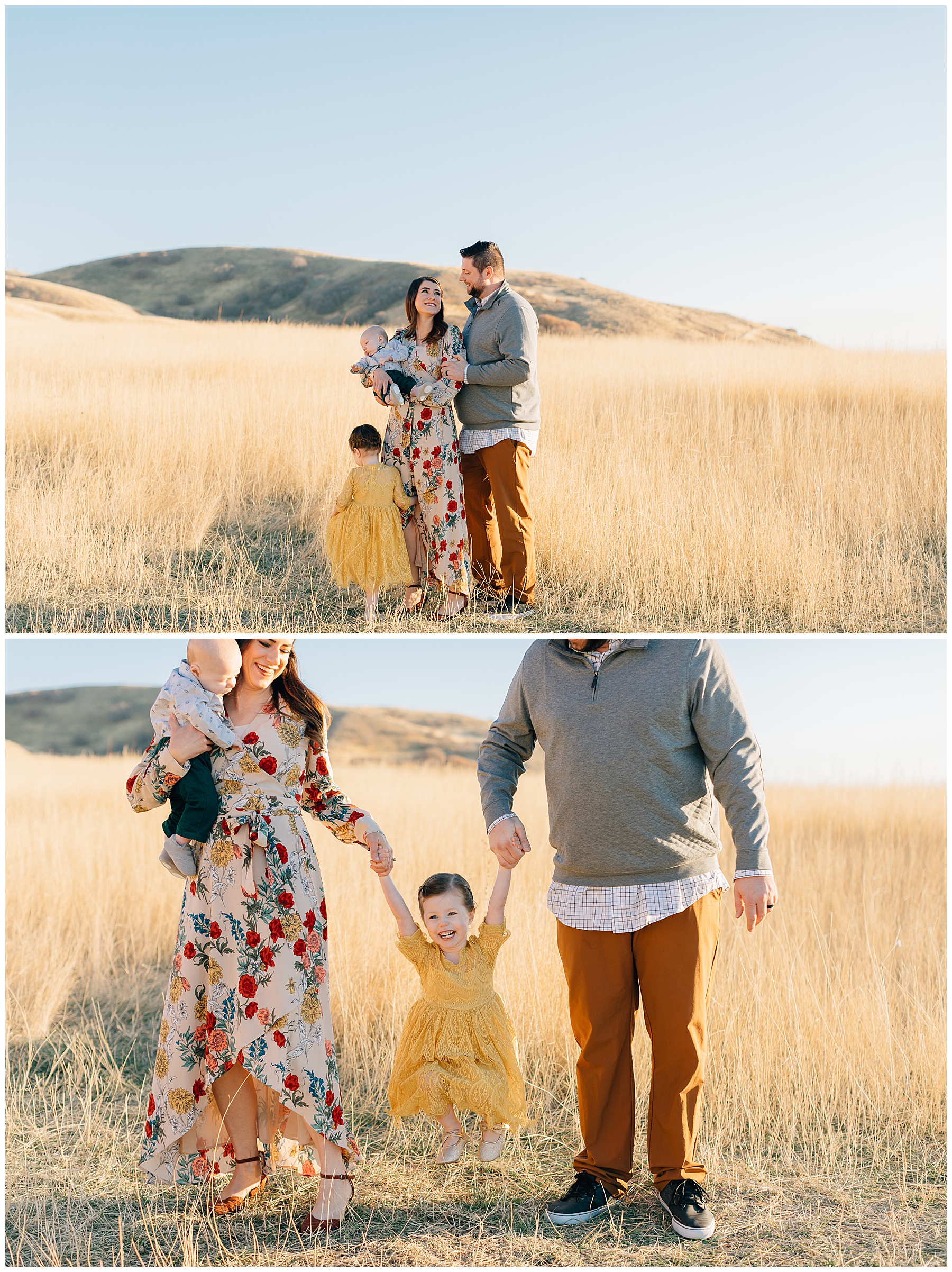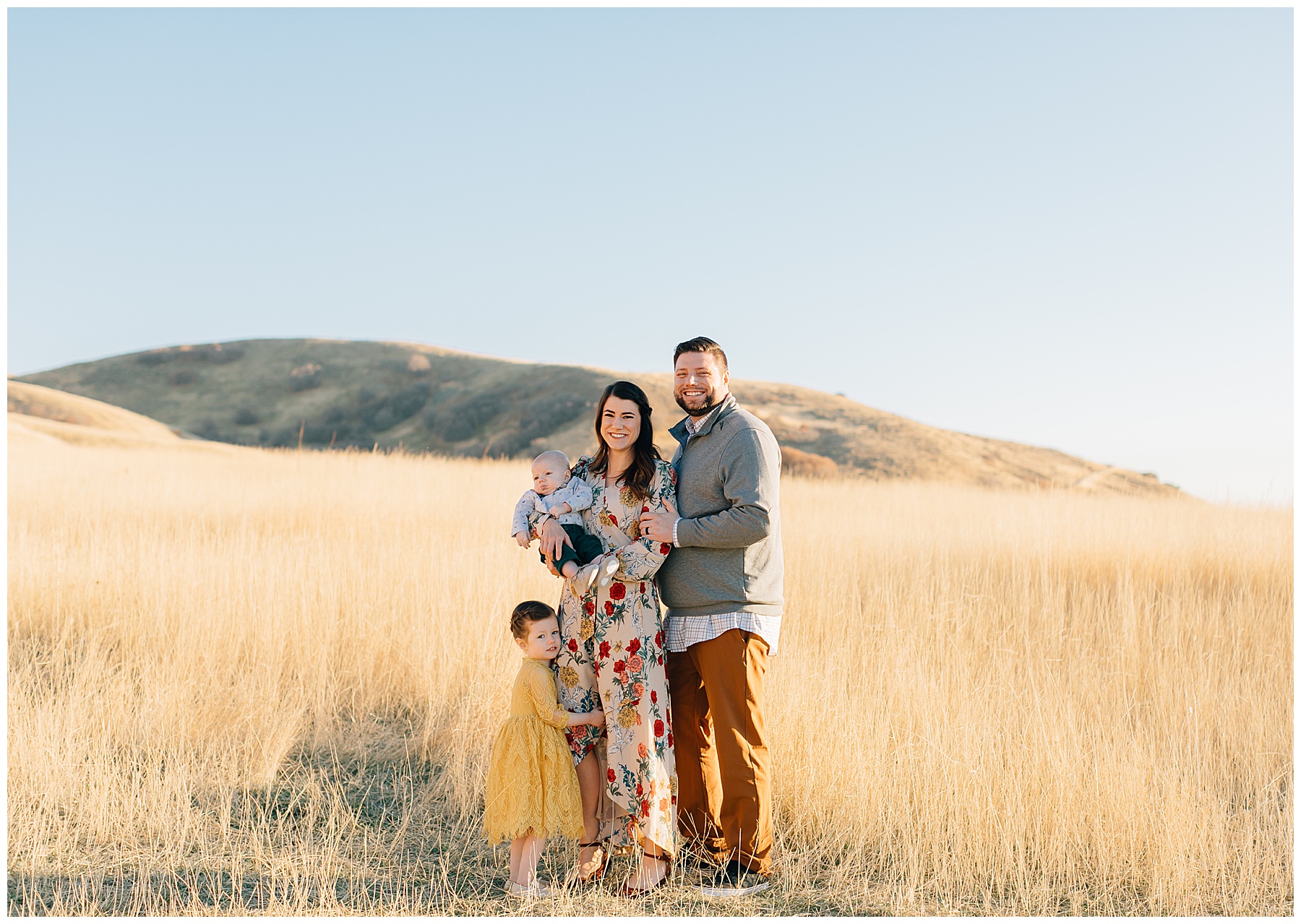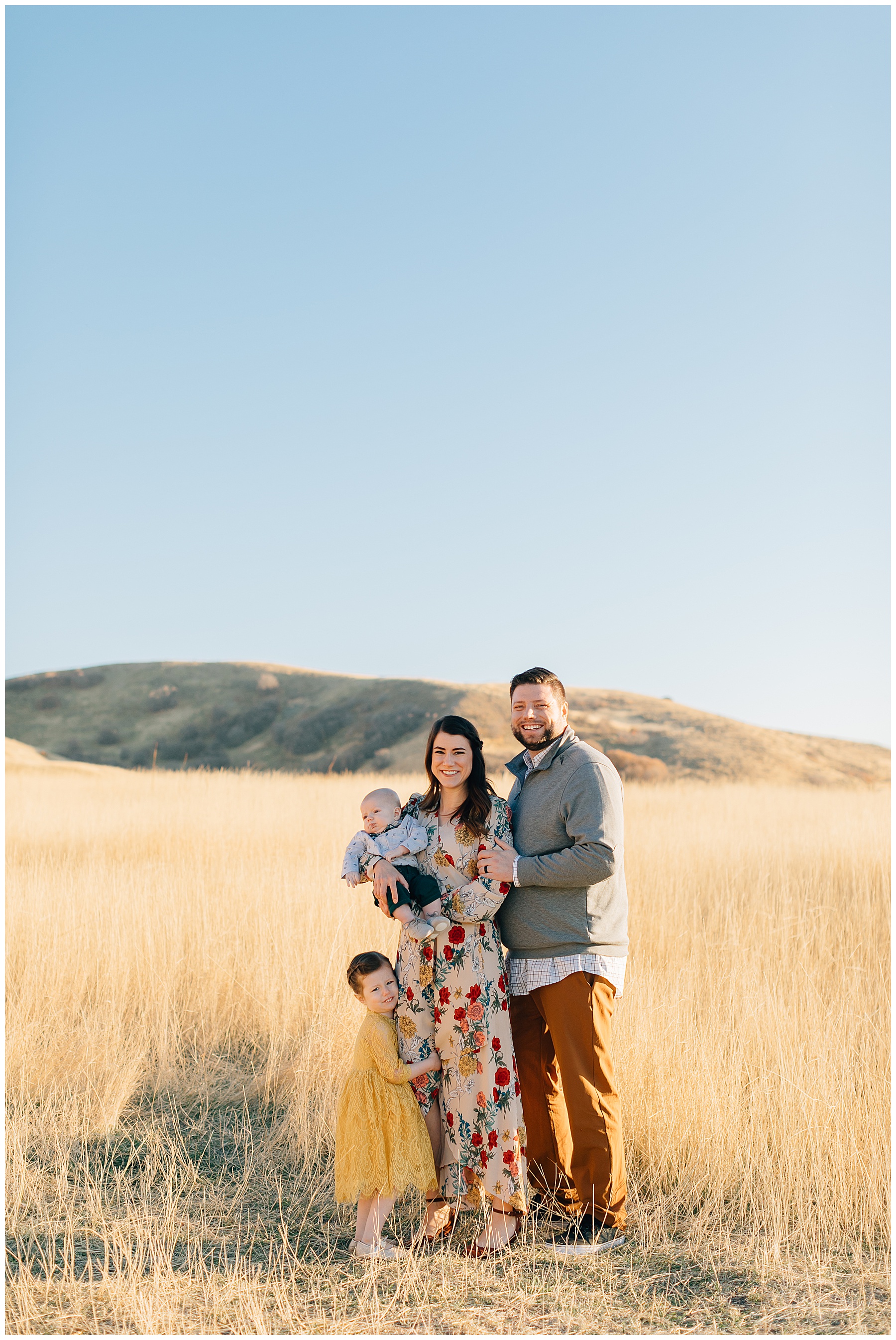 I have been DYING to shoot Tunnel Springs Park Family Pictures in the fall. I was so excited when this adorable family agreed to make the trek up to North Salt Lake to the rolling hills after our first location didn’t work out (the trees were bare and dead up Muller Park Trail). But, at Tunnel Springs the hills were golden and the light was beautiful! It was the perfect fall location.