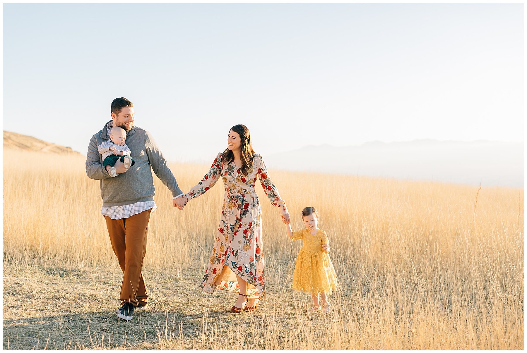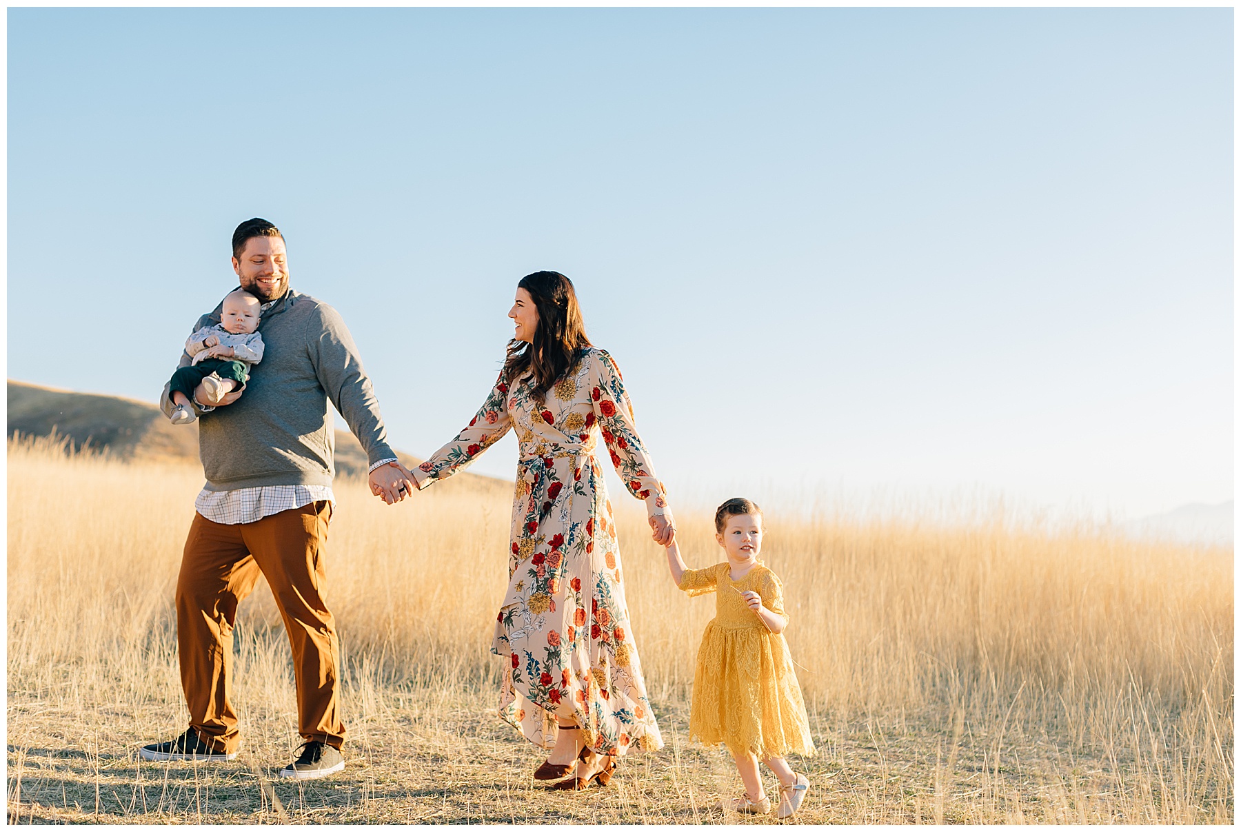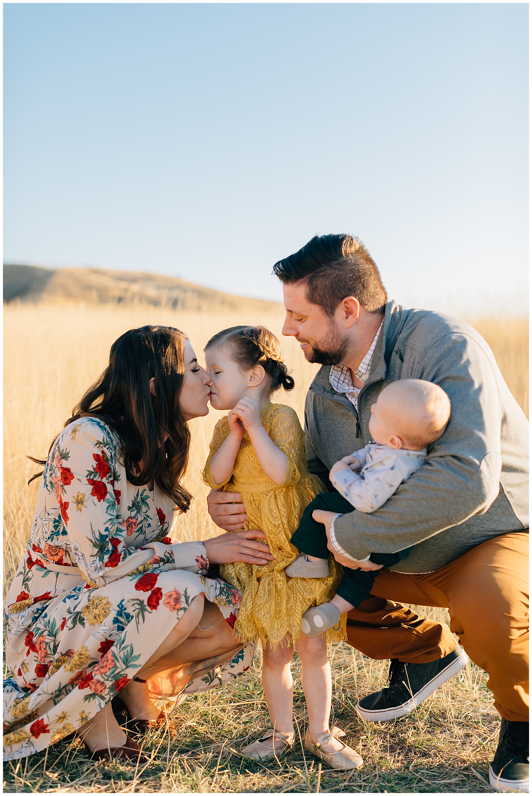 I have been DYING to shoot Tunnel Springs Park Family Pictures in the fall. I was so excited when this adorable family agreed to make the trek up to North Salt Lake to the rolling hills after our first location didn’t work out (the trees were bare and dead up Muller Park Trail). But, at Tunnel Springs the hills were golden and the light was beautiful! It was the perfect fall location.