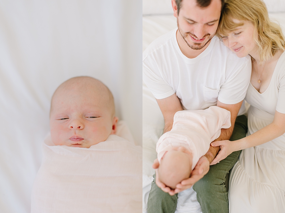 The Artistry of Newborn Photography: As experienced newborn photographers, we understand the delicacy and artistry required to create heartwarming portraits of your baby. Our approach revolves around patience, care, and attention to detail. We let your little one set the pace, capturing their tiny yawns, delicate fingers, and adorable expressions as they rest peacefully in the cozy setups of Sandy Whitespace Studios.