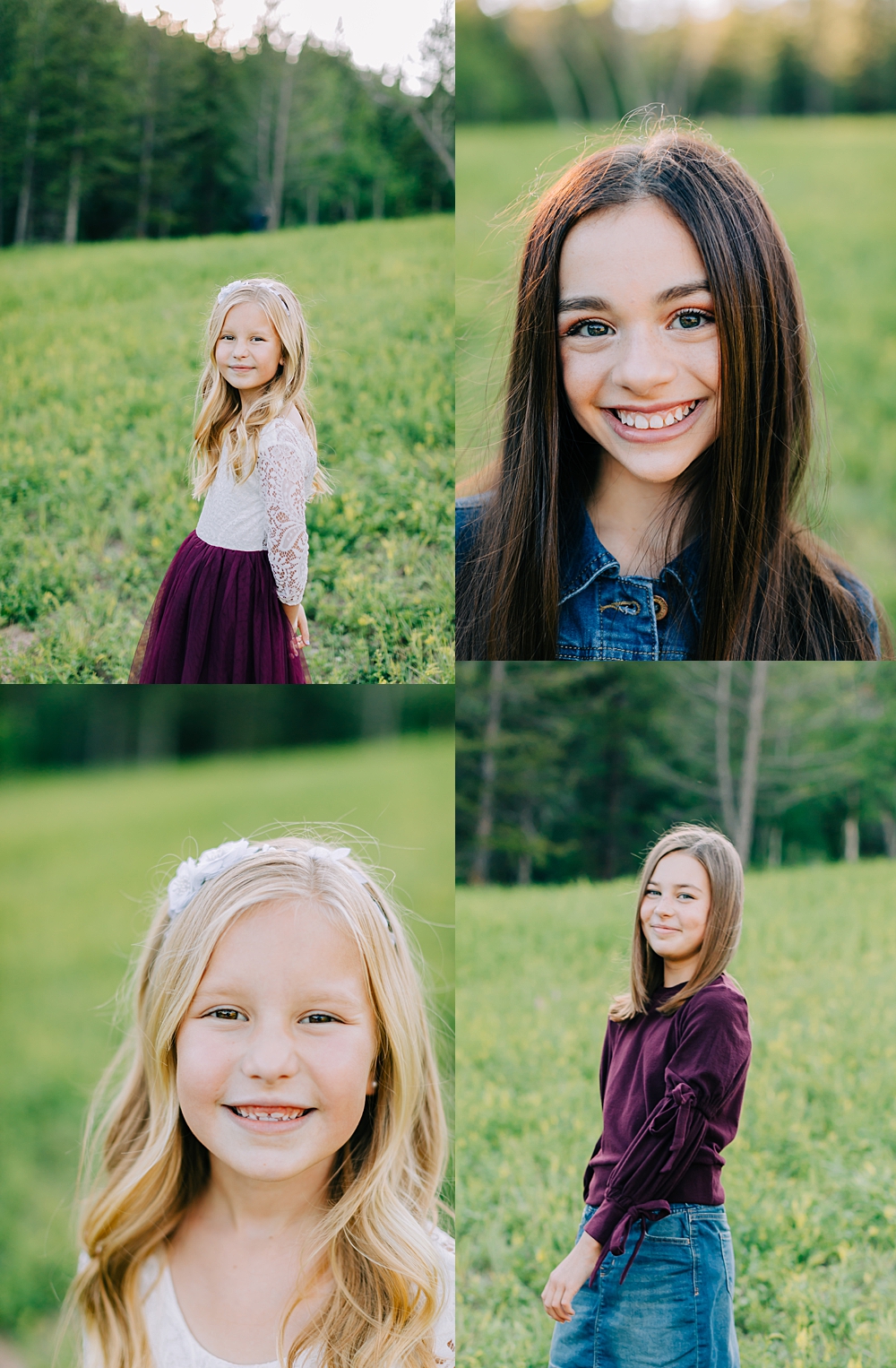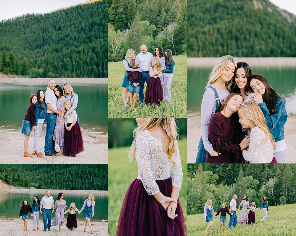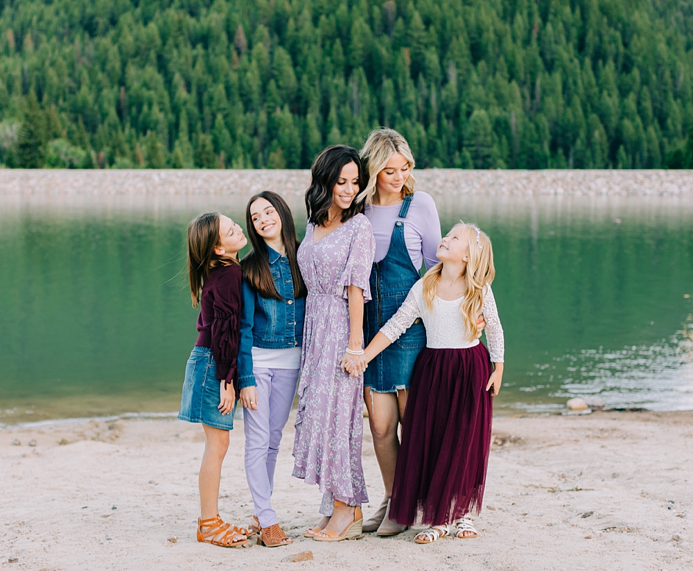 The Cannon family was so sweet! Their four daughters are just stunning and were so fun to shoot. I loved the combination of the purples in their outfits with the greens of the pines and the lakes. I love love love this session and the colors of their outfits.