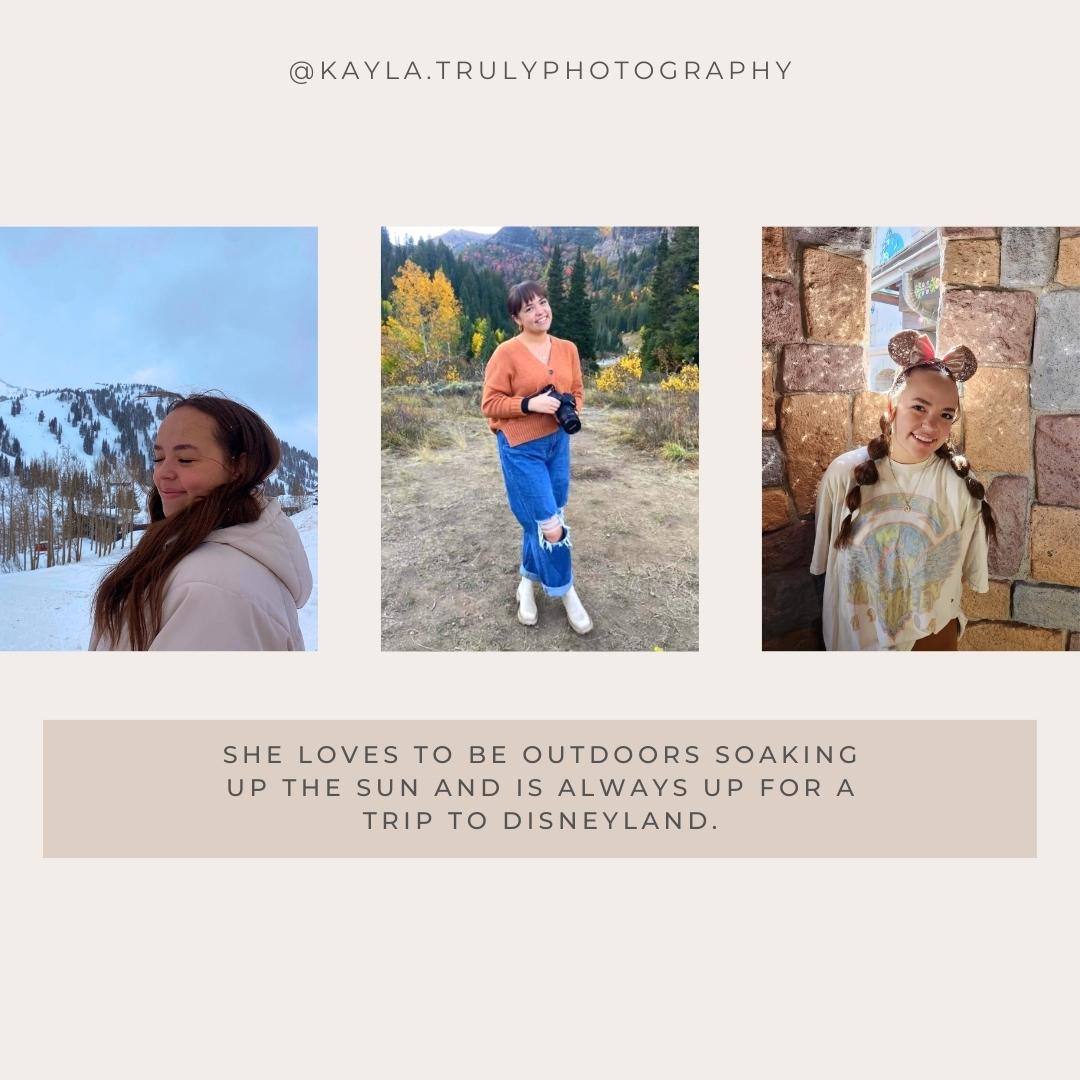 I’m Kayla, owner and photographer. I started this business as a side hustle to pay for my college tuition and am so grateful for how much it’s grown. It’s such a privilege to be able to shoot with my clients, year after year. I can’t wait to work with your family!