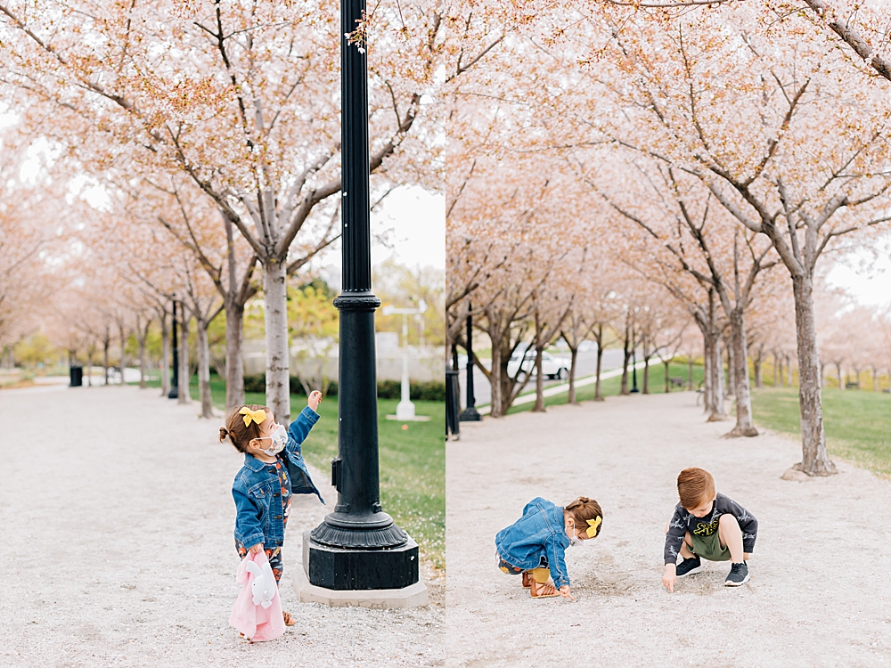 What a crazy life we’re living. I don’t think that can be overstated and while each day hold uncertainty I’ve so cherished this time with my family. Today was a gloomy, rainy day (which is my favorite kind of day). I have been wanting to see the capitol blossoms this year because they bring SO much joy, but I figured because of social distancing we wouldn’t get to see them. But, when I saw the rain this morning I figured that the blossoms would be a ghost town so I thought take the kids downtown just to peak at the blossoms. They were empty and I was so stoked!
