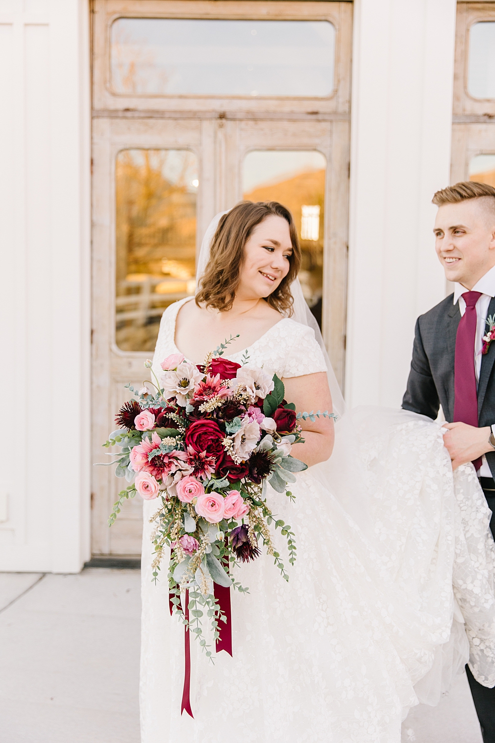 This Walker Farms Lindon Wedding was just beautiful and was everything December weddings are made of. Walker Farms is a beautiful, farmhouse venue in Lindon, UT. The main barn is modern and is absolutely stunning. It is full of beautiful light and perfect details. And it was decorated beautifully with perfect Christmas touches.